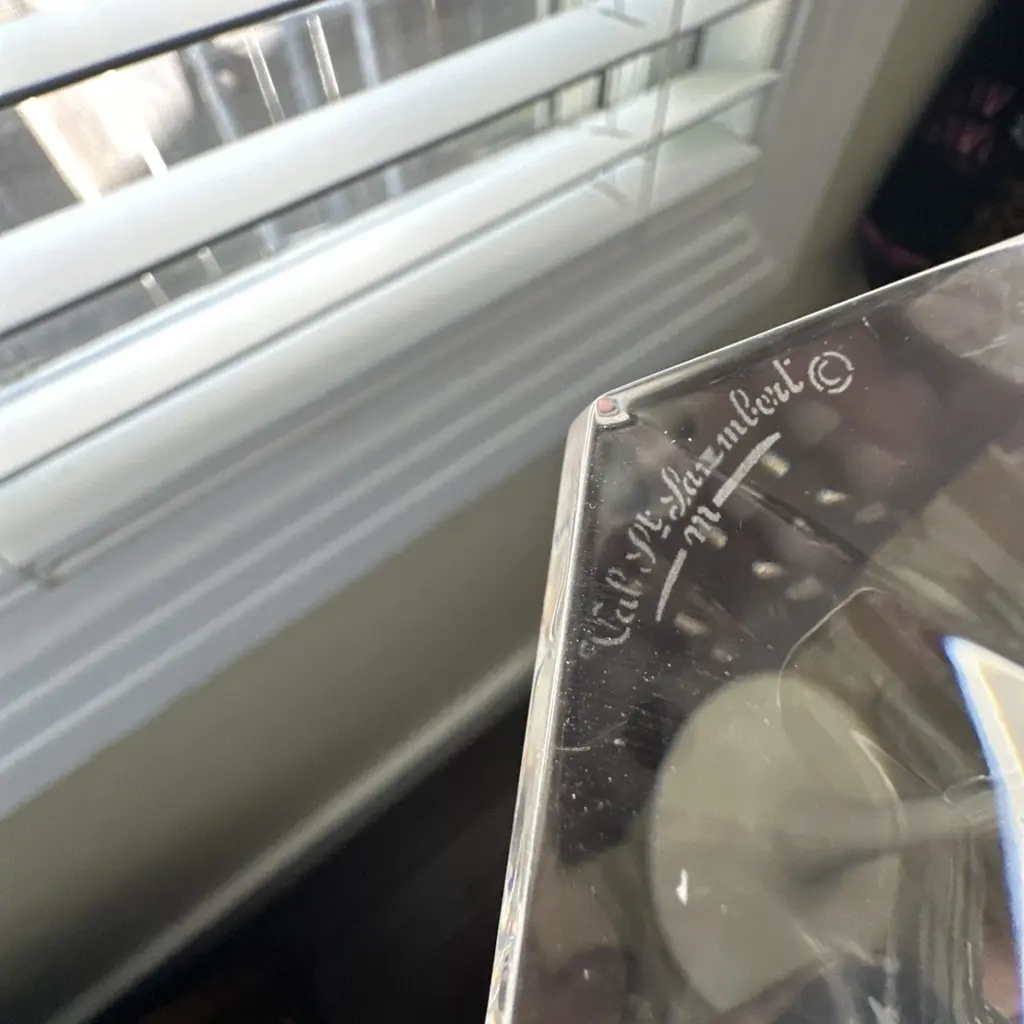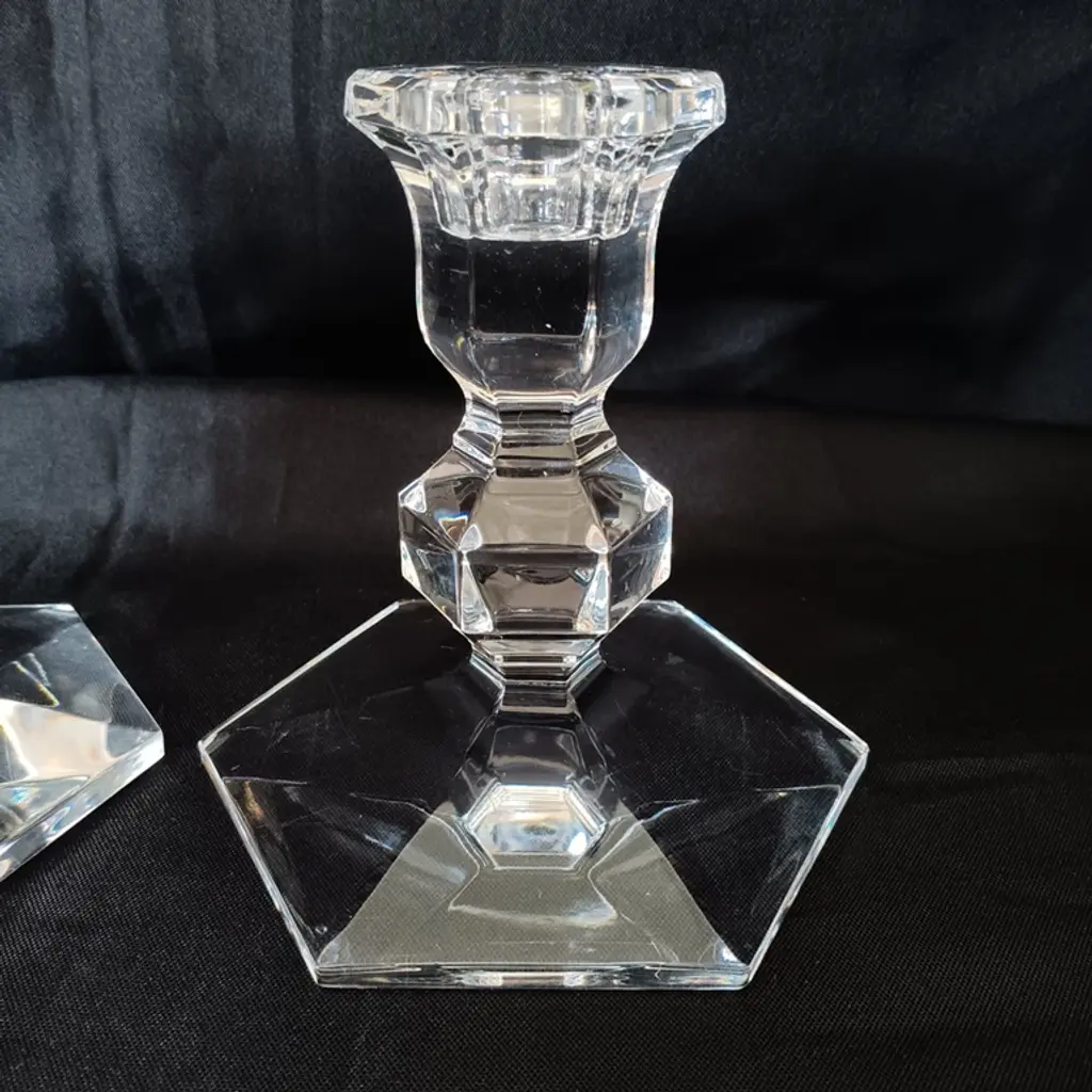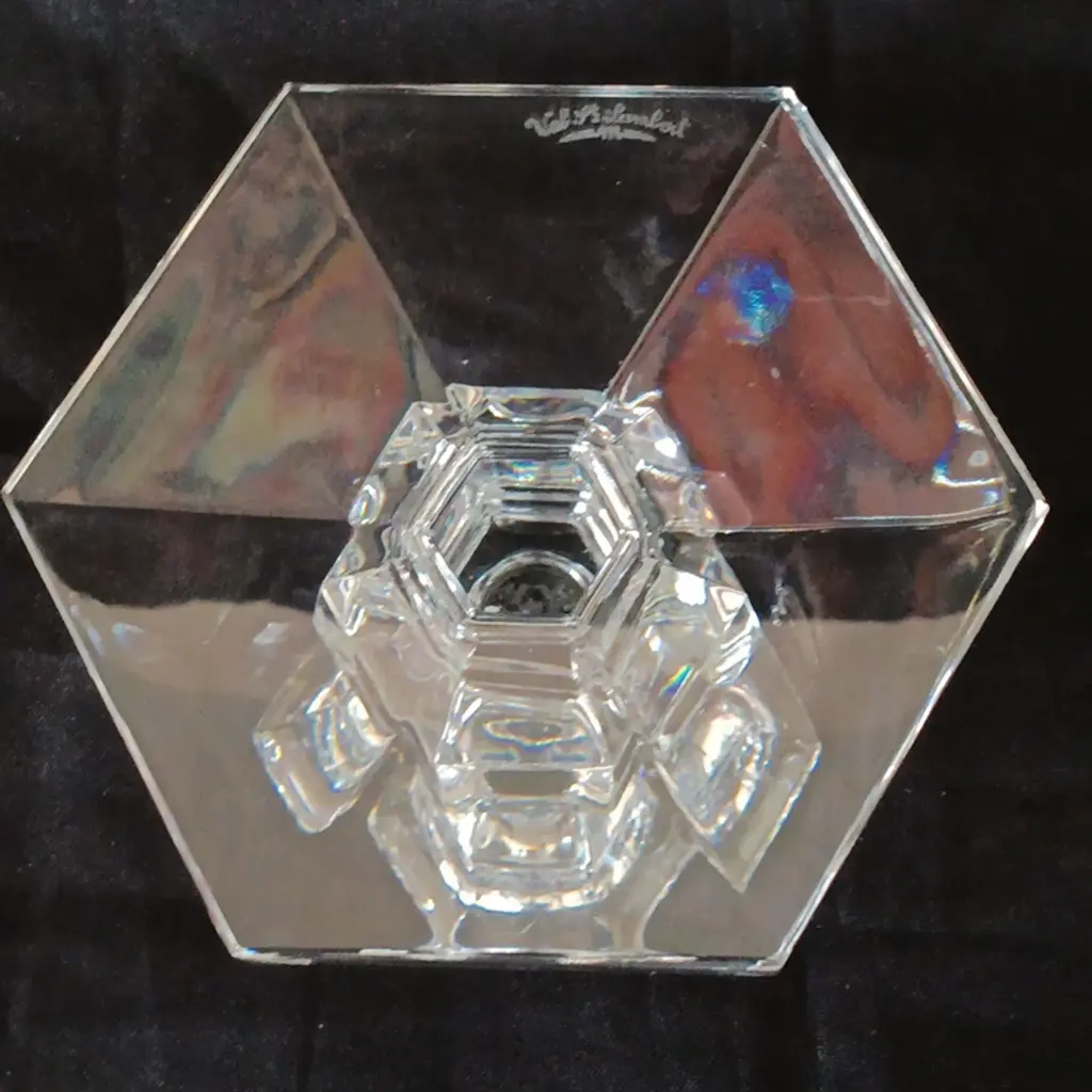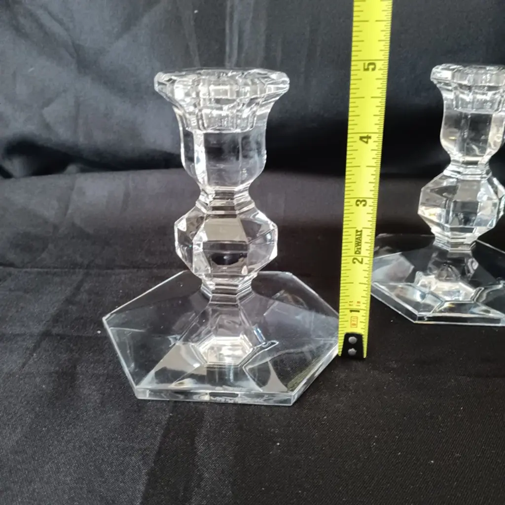 Add timeless sophistication to your décor with this set of 2 Val St. Lambert crystal candlestick holders. Expertly crafted in Belgium, these elegant pieces showcase the brand’s renowned clarity, brilliance, and craftsmanship. Their classic form and sparkling finish make them perfect for formal dining, mantel displays, or as luxurious accent décor. Details: Brand: Val St. Lambert Origin: Belgium Material: Fine crystal Quantity: Set of 2 candlestick holders Style: Elegant, Classic, Mid-Century or Traditional Use: Candle display or decorative accent A stunning pair that reflects luxury and European artistry, ideal for collectors or anyone seeking timeless crystal décor.