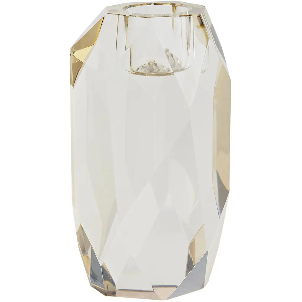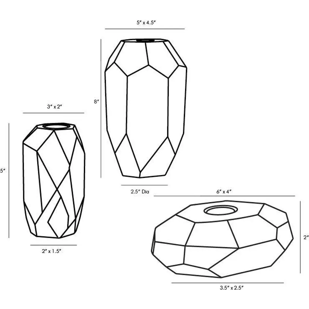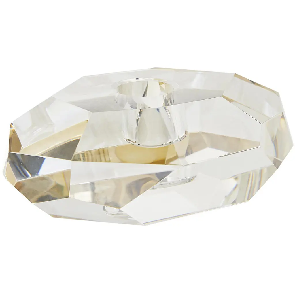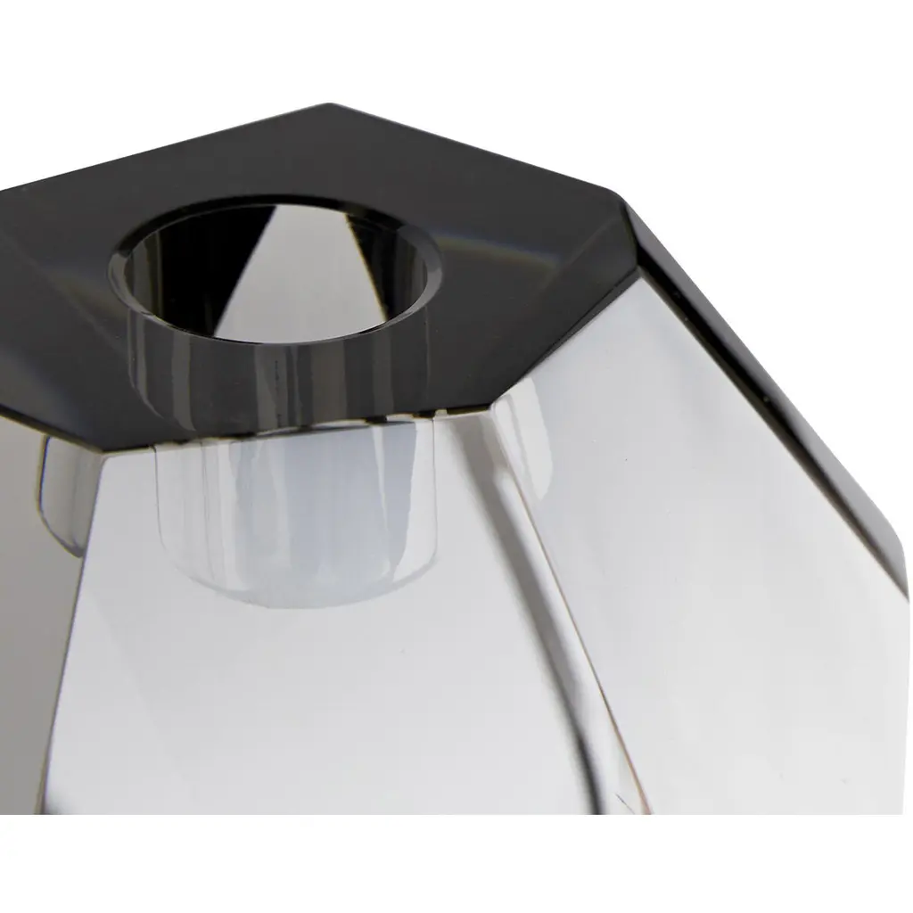 Inspired by the enthralling designs of our Gemma Collection we've created this tri-set of crystal candleholders. The champagne and smoke finishes on the diamond-like facets creates an arresting blend ofelements and colors. The defined edges are highlighted by the contents of a taper candle. When grouped together this set creates quite the lustrous trifecta.