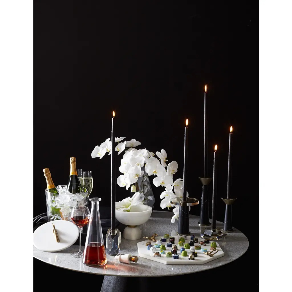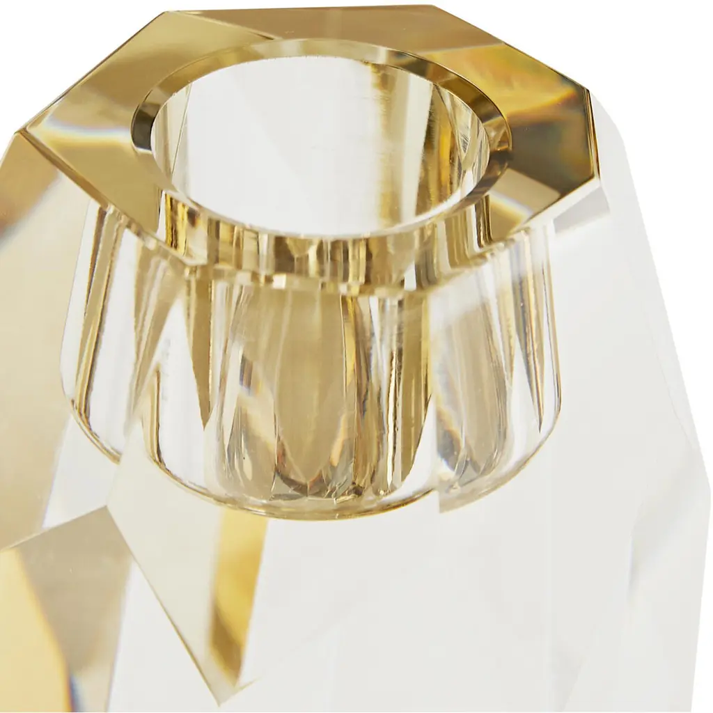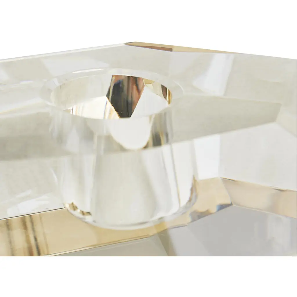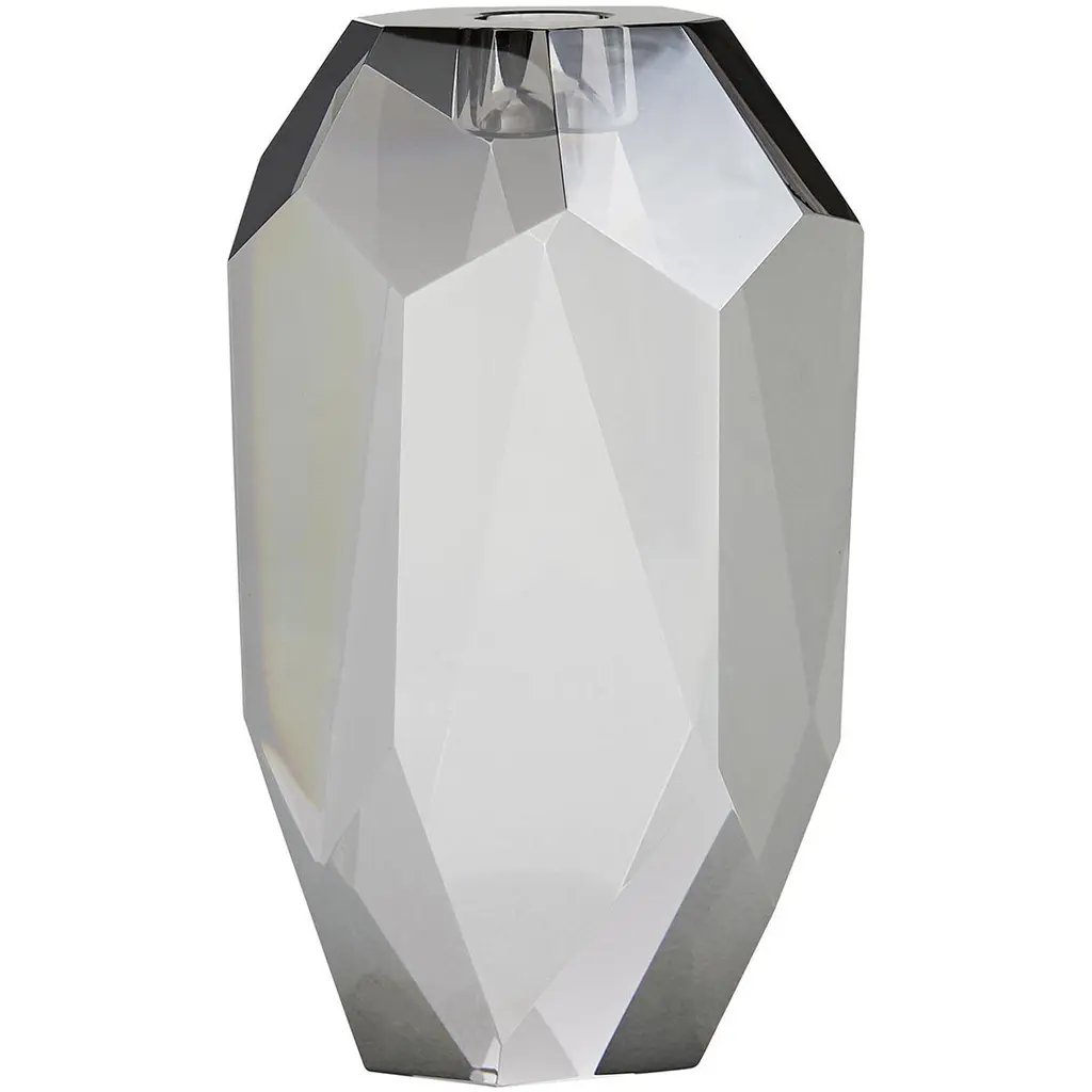 Inspired by the enthralling designs of our Gemma Collection we've created this tri-set of crystal candleholders. The champagne and smoke finishes on the diamond-like facets creates an arresting blend ofelements and colors. The defined edges are highlighted by the contents of a taper candle. When grouped together this set creates quite the lustrous trifecta.
