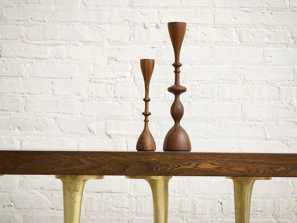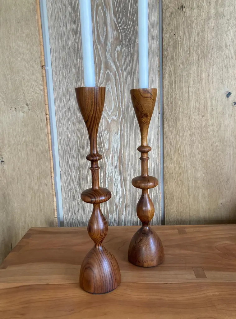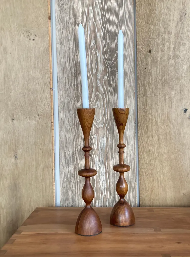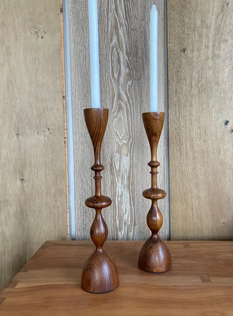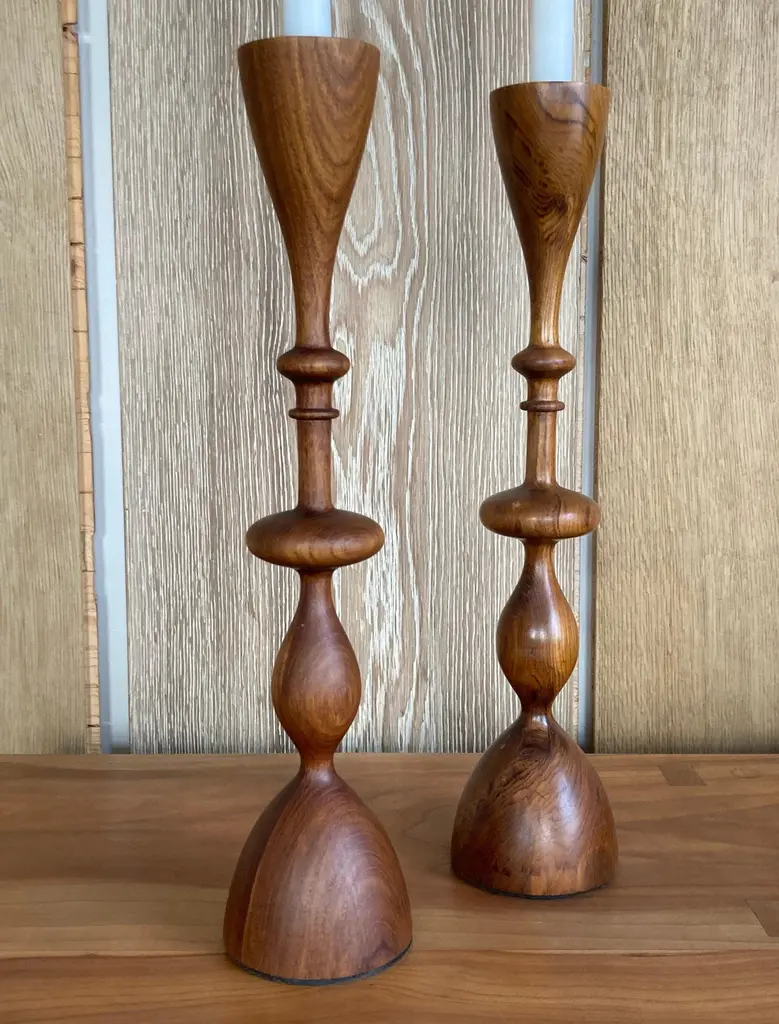 Wave Candlesticks (Sold Individually, Large, Teak)