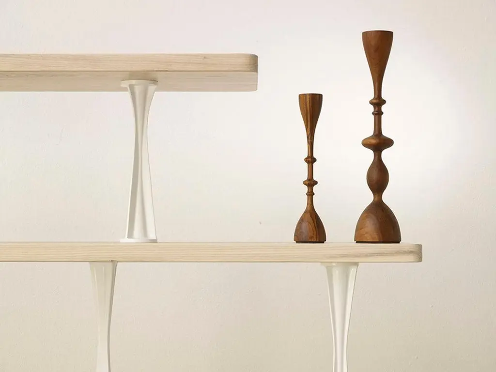 Hand-turned from sustainably harvested Mango wood, the Wave Candlestick draws its form from sinusoidal waves. Burned and oiled finish. Available in short (12") and tall (16"). Founded in 2011, AKMD developed out of a thirteen-year friendship and design collaboration between Ayush Kasliwal and Mike Dreeben.The two met in Jaipur, India in 1998: Dreeben had recently completed an MFA in sculpture at the University of Chicago and was working on a Fulbright grant, studying vernacular woodworking; Kasliwal had just completed study at the prestigious National Institute of Design in Ahmedabad, with a degree in furniture design. What they found was a mutual interest in fine craft practices and how these could inform contemporary design. This has become a driving concept behind the AKMD collection.Both Kasliwal and Dreeben are makers and their design approach begins with a deep understanding of the inherent characteristics of material and of production method — allowing process to drive design, rather than the other way around. Their work is pragmatic and honest: the materials are presented straightforwardly, as are the mechanical connections that bind the pieces together. Their furniture is notably free of veneer and plastics, that don't provide the kind durability that one can expect from solid wood, cast metal, or saddle leather And although everything they offer is meticulously crafted, their pieces are comfortable and unfussy — pieces that you can live with, that will respond positively to use and age by developing a patina that reflects their history in one's home.