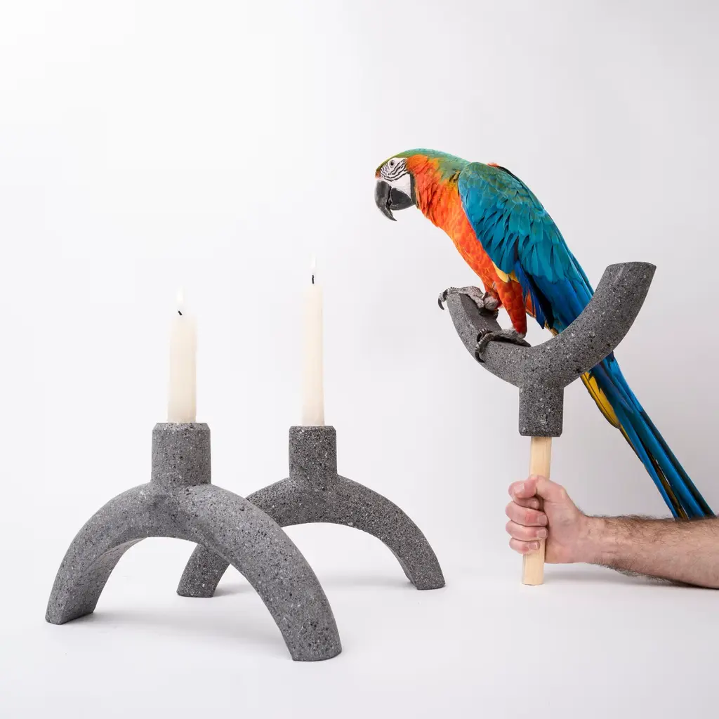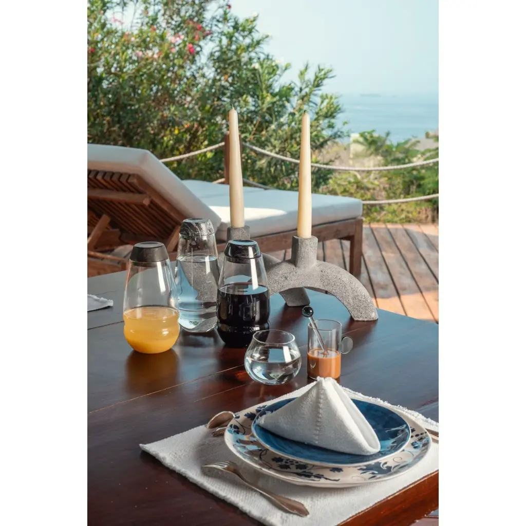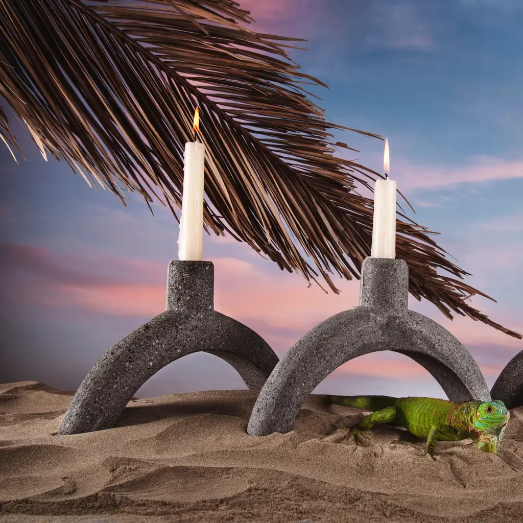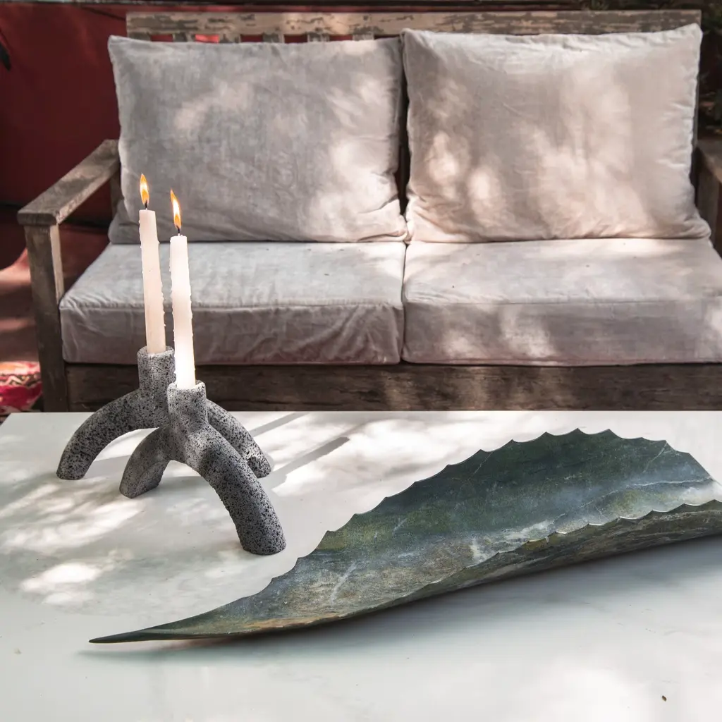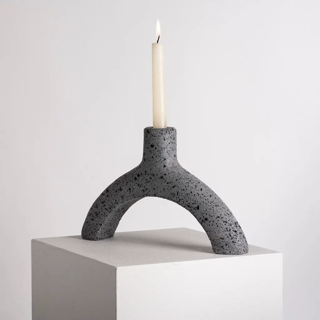 Candle Holder hand carved in volcanic stone from one single block. These piece expresses its origins only by looking at it. Uses standard candlestick.