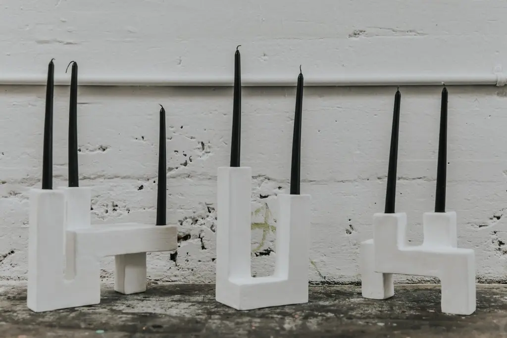 An abstract take on the letters X, Y, and Z, this collection of three candle holders is an elegant addition to any living room or dining table. With its organic but monolithic curves and clean texture, these hand-sculpted candle holders are made from wooden forms and feature a hand-painted plaster and fiberglass finish. Each piece is made to order and is available in white, black, cream, or custom colors. Brent Warr Studios founder Brent Warr was raised in Georgia, USA and studied at Auburn University’s college of Architecture, Design, and Construction. Before moving to the back to Georgia to start his furniture and lighting studio, he moved to NYC to work for esteemed Interior and Architecture firms Meyer Davis Studio and Yabu Pushelberg. Now located in Bainbridge, Georgia, Warr’s furniture, lighting, sculptures, and interiors projects are defined by a studied balance of fluidity and structure, composition and function. His practice is both intuitive and informed by an understanding of history, process, and materials. Above all, Warr’s guiding principles are humor and storytelling. Brent Warr has been featured in Interior Design Magazine, Architectural Digest, Elle Decor, and Vogue Living to name a few.