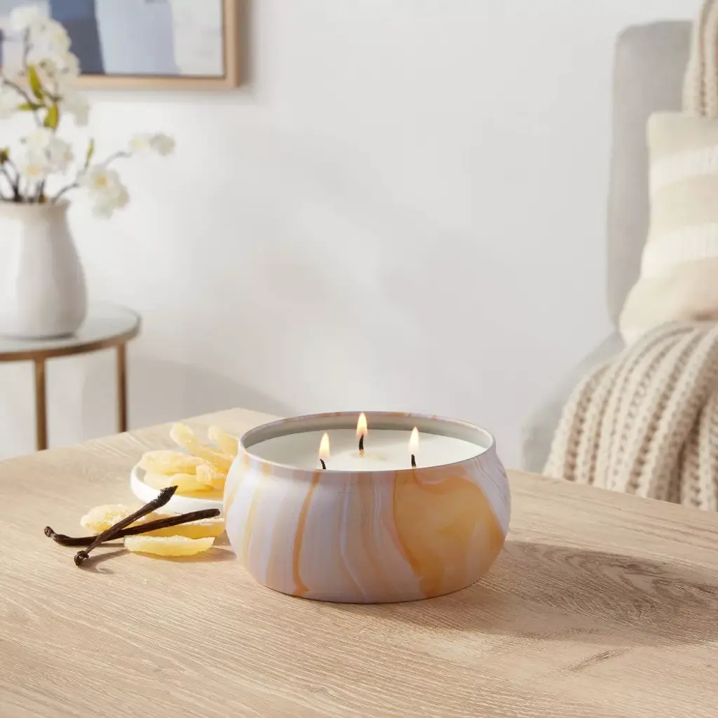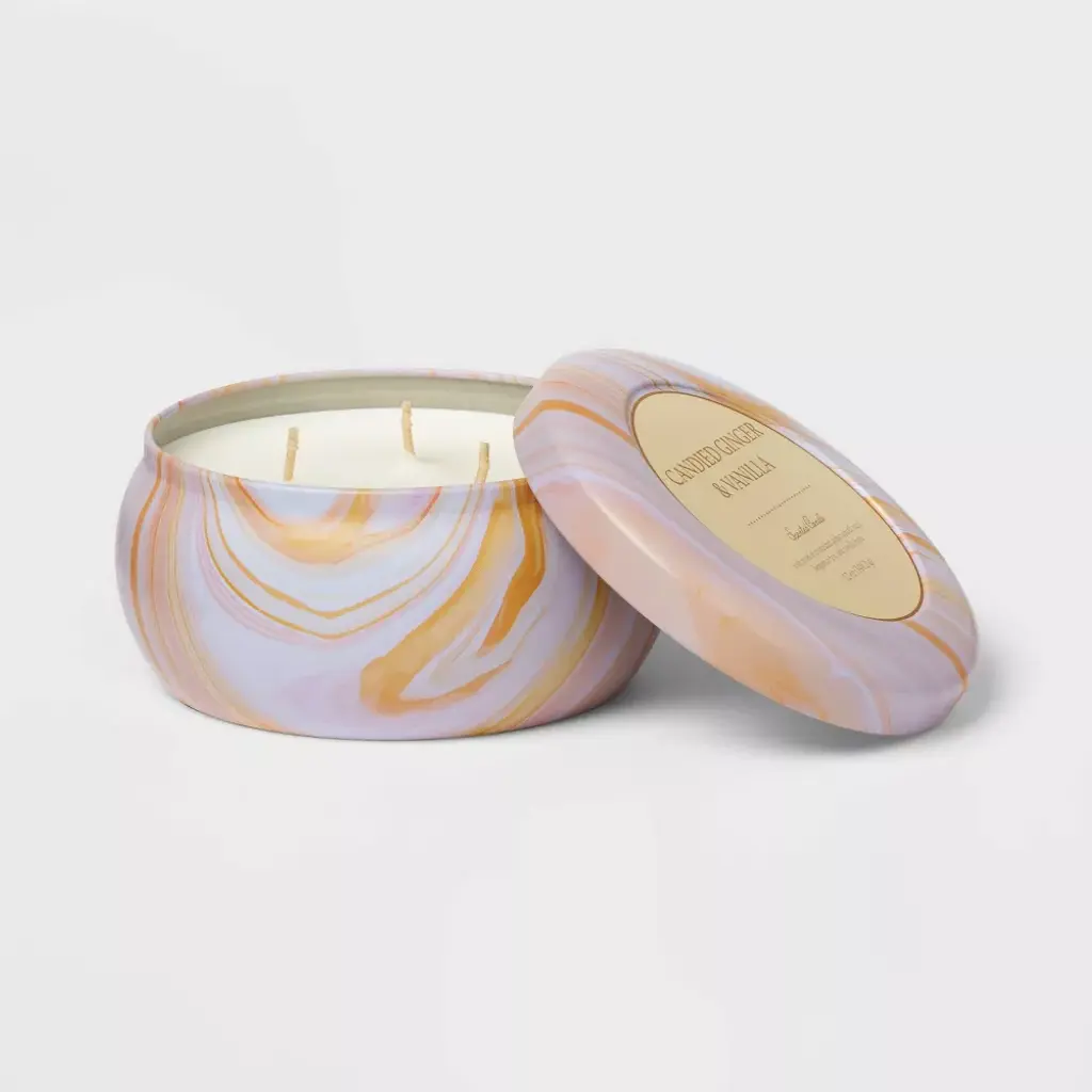 12oz Marble Tin Candle Candied Ginger & Vanilla Tan - Threshold™