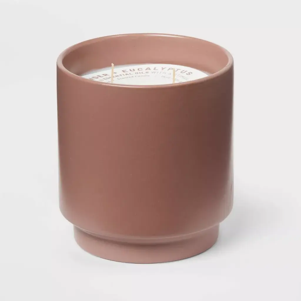 Enjoy moments of pure bliss with the 14oz Matte Ceramic Candle Lavender & Eucalyptus from Project 62™. Molded into a ceramic body, this candle burns for up to 30 hours, acting as the perfect stress buster. Infused with soothing notes of lavender and eucalyptus, this matte ceramic scented candle by Project 62™ makes a great pick for when you want to relax on a nice, quiet evening. Modern pieces made for everyday living.