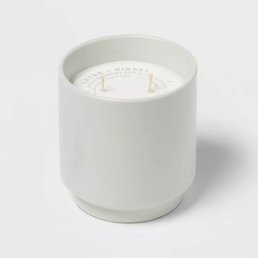 Create a welcoming ambience at home by lighting this 14-oz Matte Ceramic Lotus and Hinoki Candle from Project 62™. This scented candle is infused with fresh and earthy notes of lotus & hinoki to help promote relaxation. With a wonderful ceramic exterior, place this pretty ceramic candle from Project 62™ on any countertop and enjoy a relaxing yoga session or a nice bubble bath. Project 62™ Modern pieces made for everyday living.