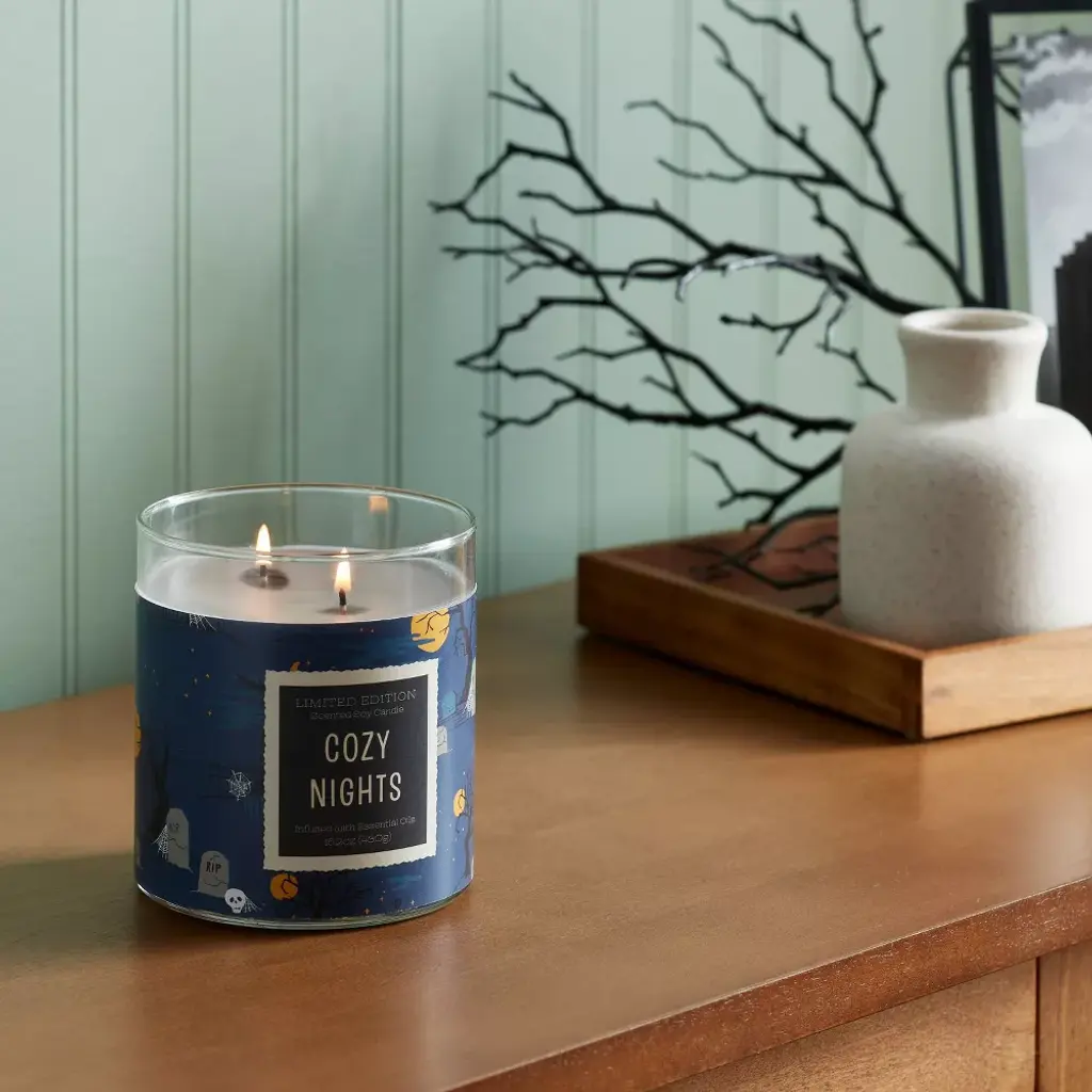 Set the right mood at home with the 15.1oz Cozy Night Halloween Jar Candle from Opalhouse™. This candle comes in a lidded glass jar and the bergamot, caramel and tobacco scent gives a refreshing vibe. With a burn time of up to 50 hours, you can store this Opalhouse™ 15.1oz Cozy Night Halloween Jar Candle and light it up when you need a well-deserved break. Opalhouse™: Create spaces as bold as your spirit.