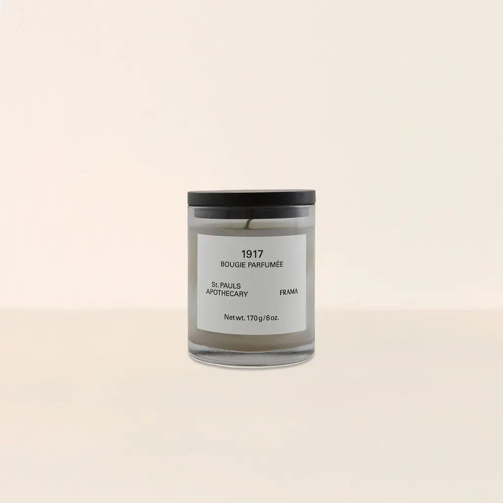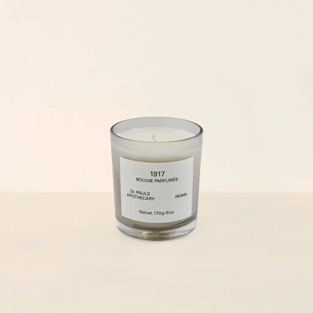 If you're searching for a rich, woody fragrance laced with sensual notes to enhance your home's unique character or gift someone special, 1917 Scented Candle by Frama makes a remarkable choice. Made of all-natural ingredients and contained in a dark glass beaker, this elegant soy wax candle will delight you with its finely crafted, opulent nuances and nurturing warm glow. This candle has a very delicate fragrance that subtly scents the air. Top: Bergamot and Cedarwood Heart: Rose and Lilac Bottom: Patchouli, Seaweed, Oakmoss