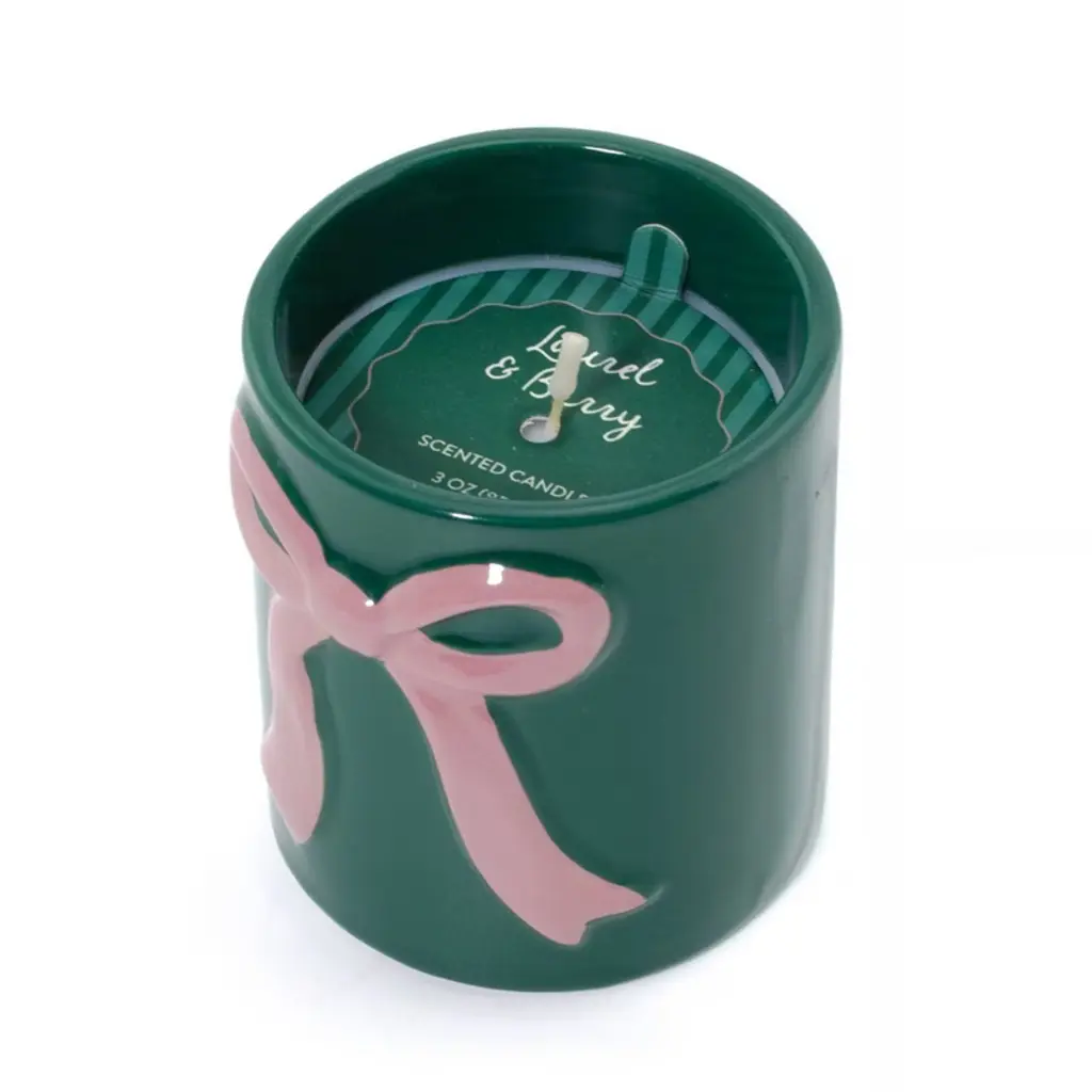 3Oz Ceramic Bow Candles Laurel And Berry - Bullseye's Playground™