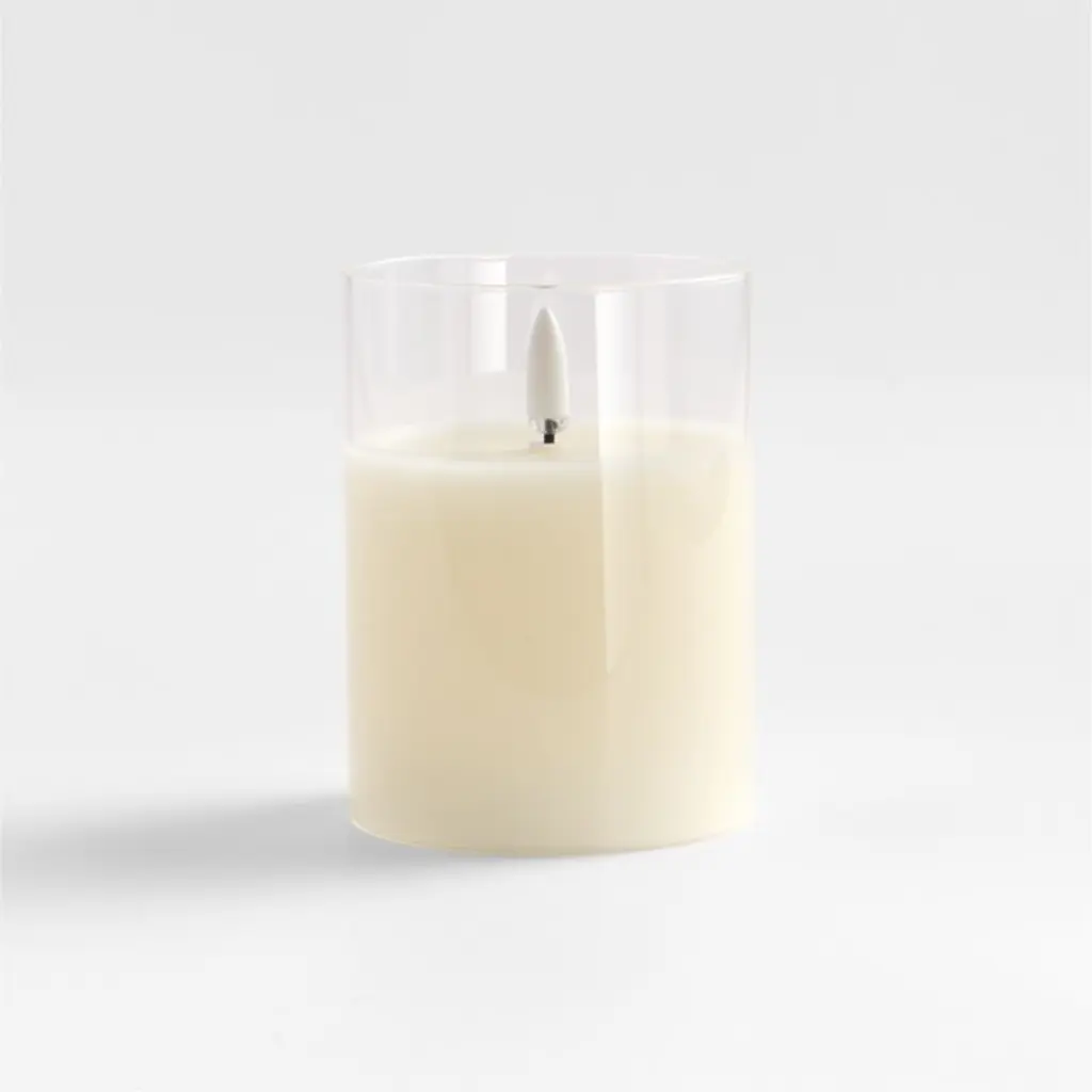 3"x4" Clear Glass Ivory Flameless Pillar Candle
