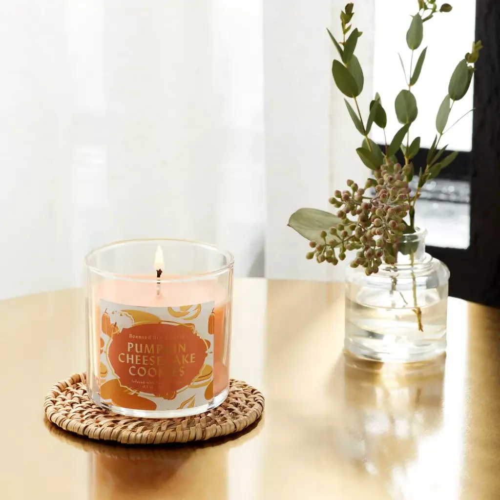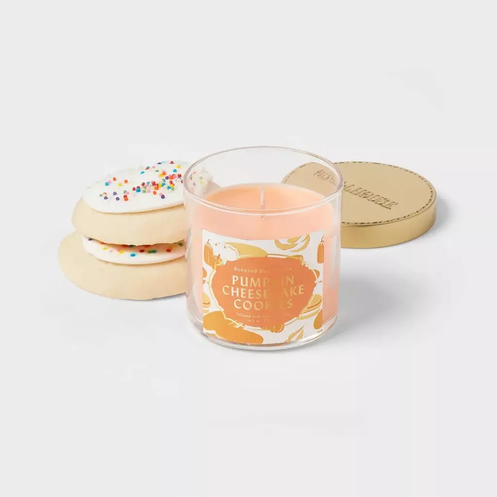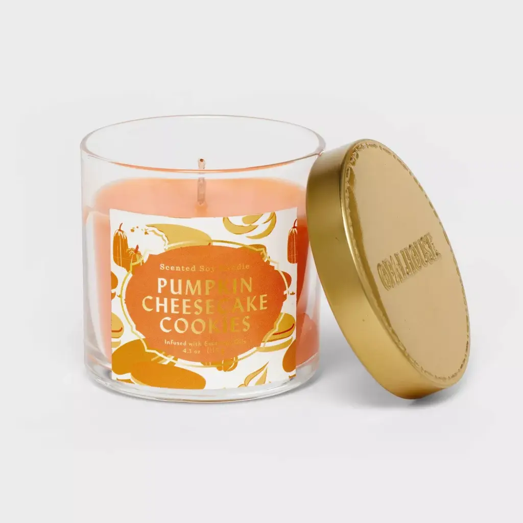 Set the right mood at home with the 4.1oz Pumpkin Cheesecake Cookie Jar Candle Orange from Opalhouse™. This candle comes in a lidded glass jar and the brown sugar and pumpkin scent gives a refreshing vibe. With a burn time of up to 20 hours, you can store this Opalhouse™ 4.1oz Pumpkin Cheesecake Cookie Jar Candle Orange and light it up when you need a well-deserved break. Opalhouse™: Create spaces as bold as your spirit.