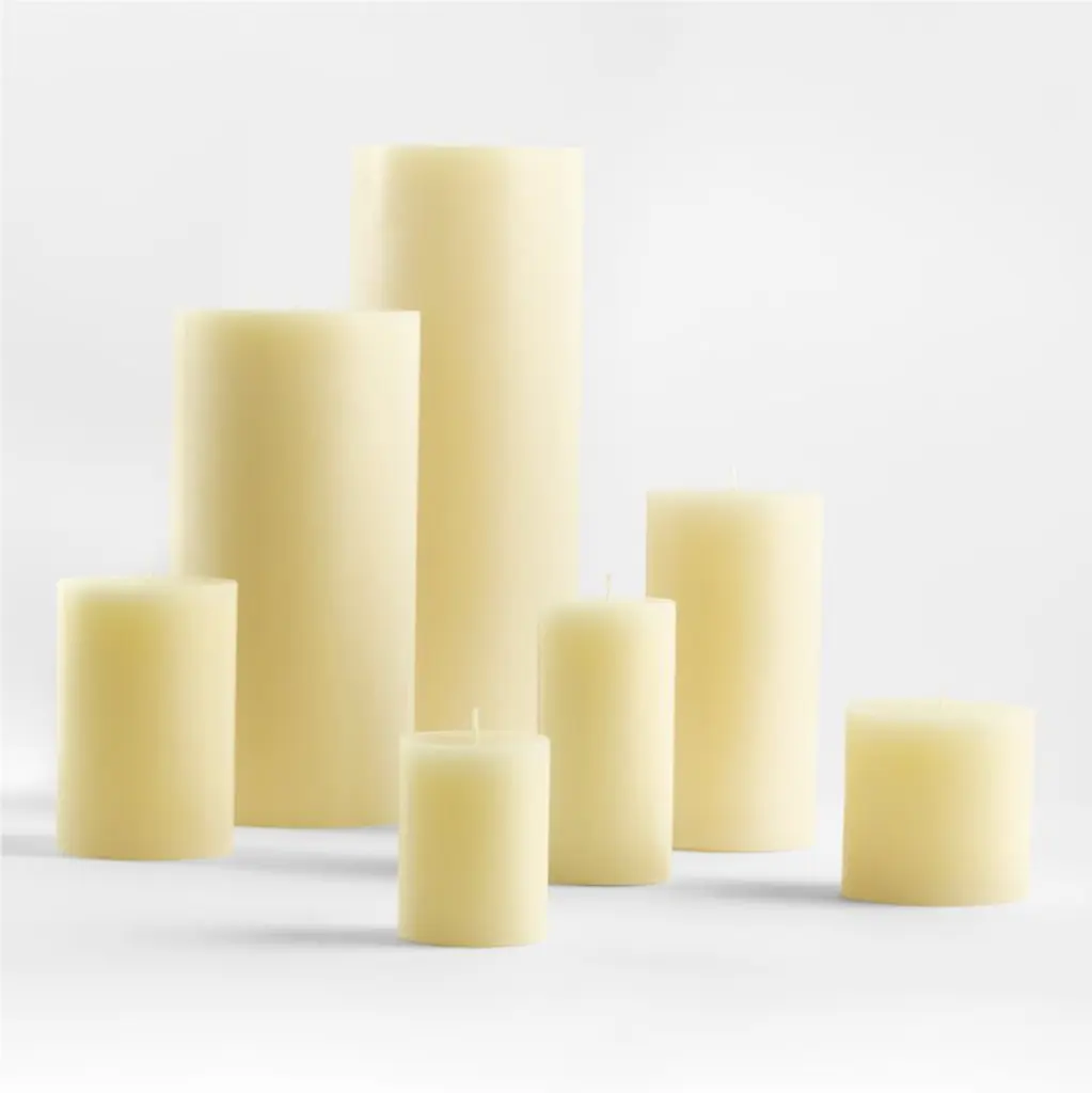 Slightly stouter than most pillars, this tall candle has a strong presence in our hurricanes, lanterns, centerpieces and other candle holders. Unscented wax in elegant ivory makes it perfect for the refined dining table.
