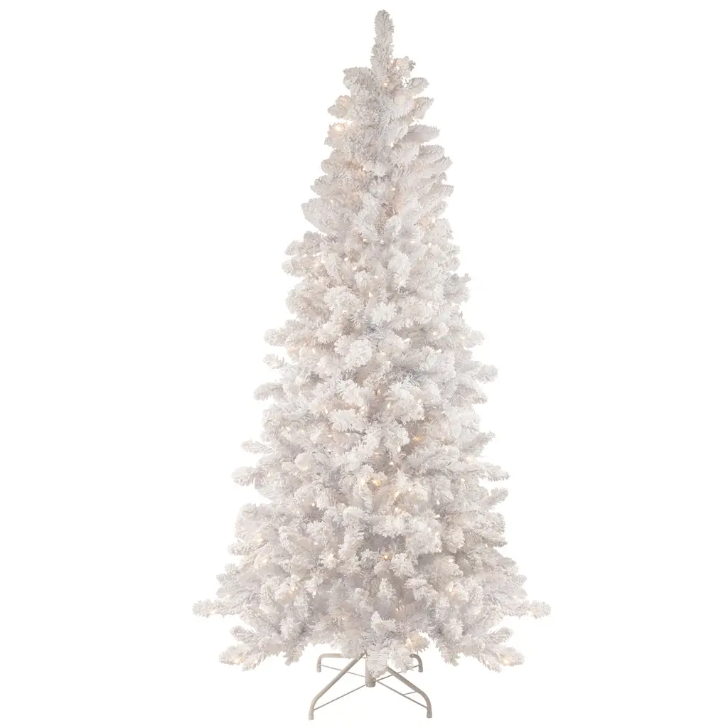 6.5' Medium Flocked Norway Pine Artificial Christmas Tree White Led - 6.5 Foot - White - 6.5 Foot
