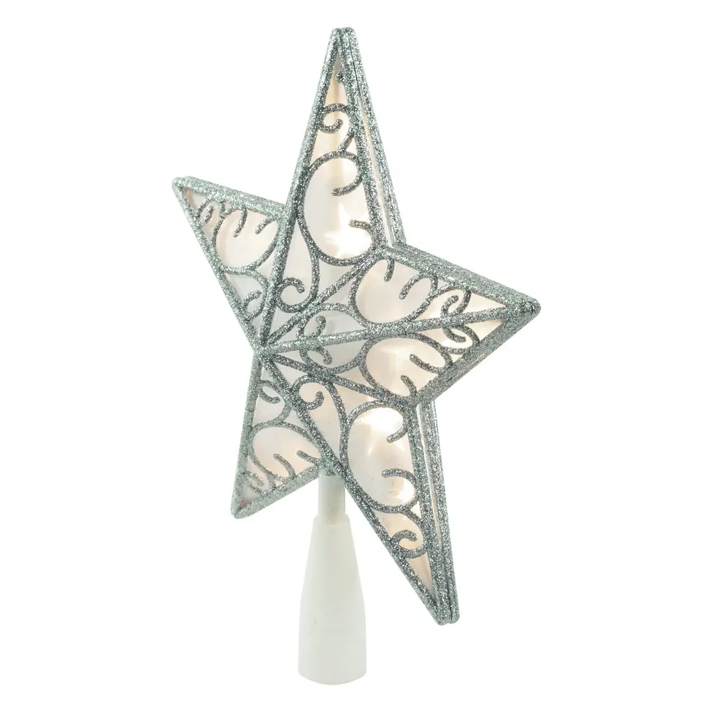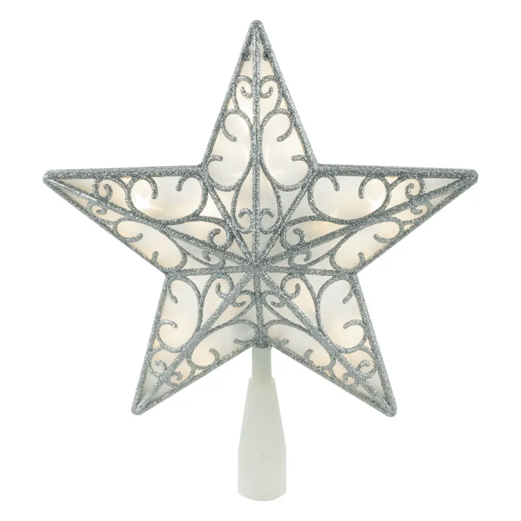9" Led Lighted Silver Glitter Star Christmas Tree Topper Warm White Lights - 9 - 9