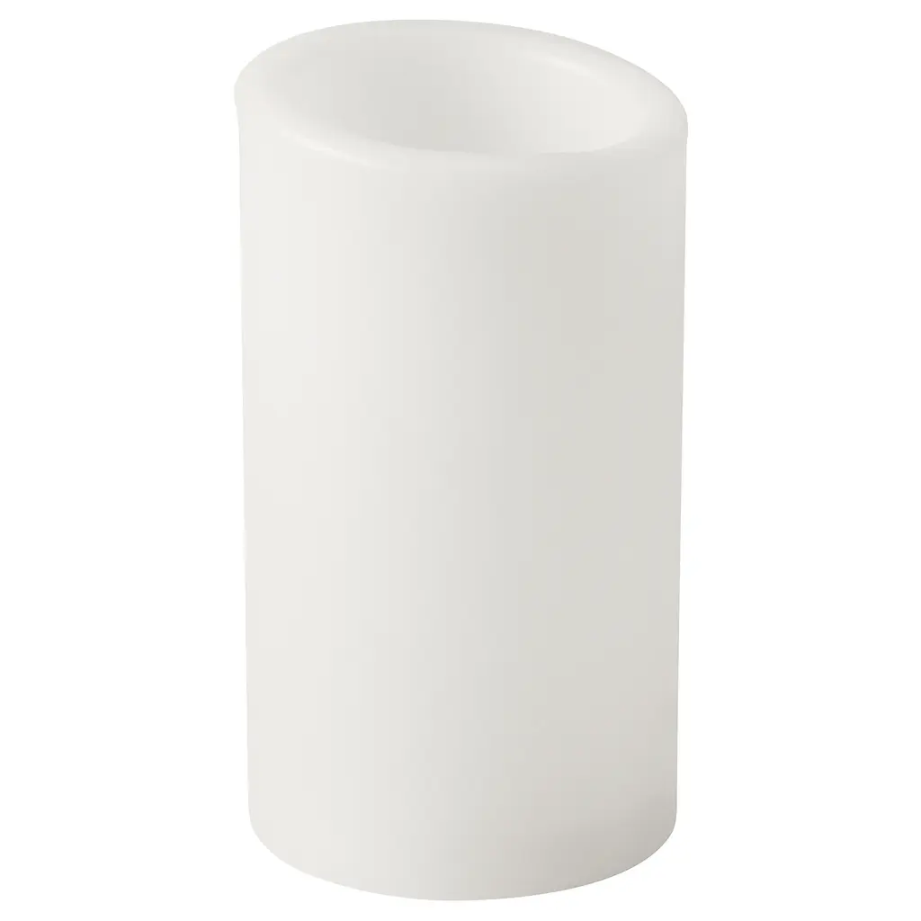 ÄDELLÖVTRÄD LED block candle - white/indoor 5 3/8 ". The LED candle gives a cozy, flickering light that resembles a real candle flame. A safe alternative for homes with children or pets since the block candle can be used as decorative lighting anywhere without the risk of fire.