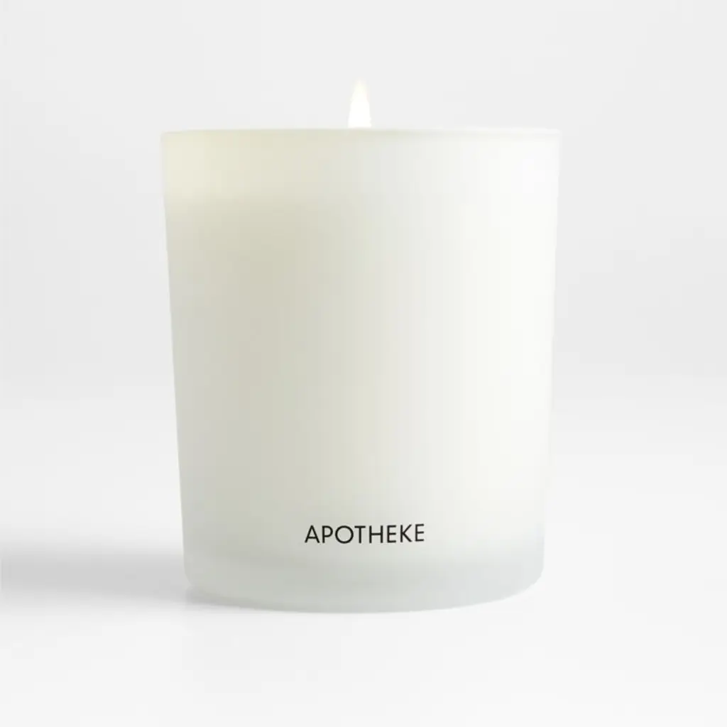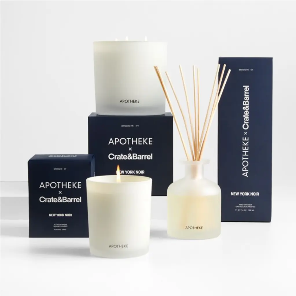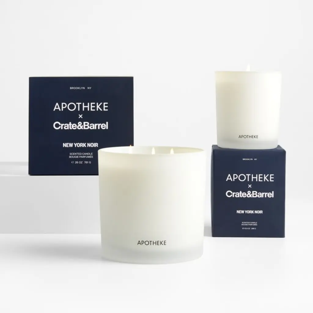 Apotheke created this candle's multilayered scent to celebrate the opening of Crate & Barrel's flagship store in New York's dynamic Flatiron District. Anchored by the rich scent of amber and birch tar, the earthy fragrance layers woody notes with essences of suede and incense to create an air of mystery and romance. Our exclusive candle makes a great gift or just-because purchase, made with a soy-wax blend and housed in a translucent glass vessel with a matte finish.