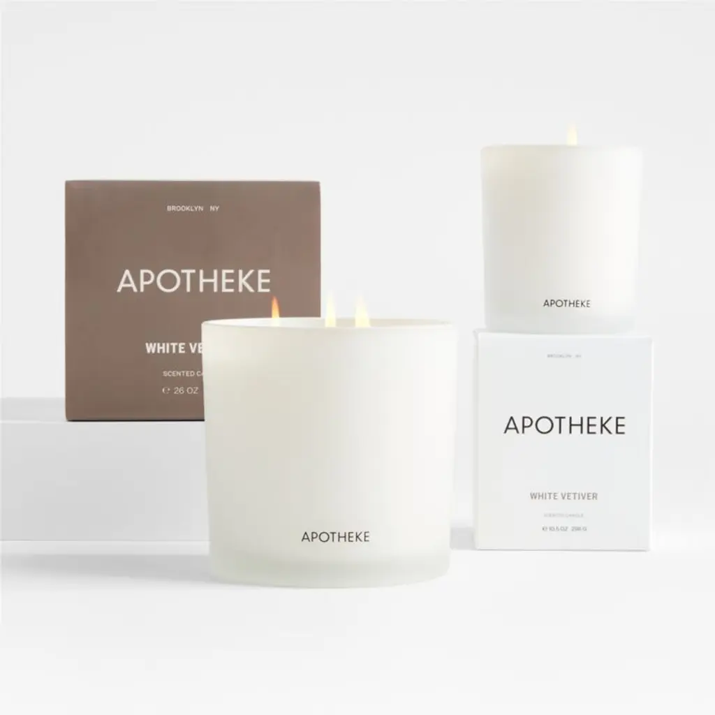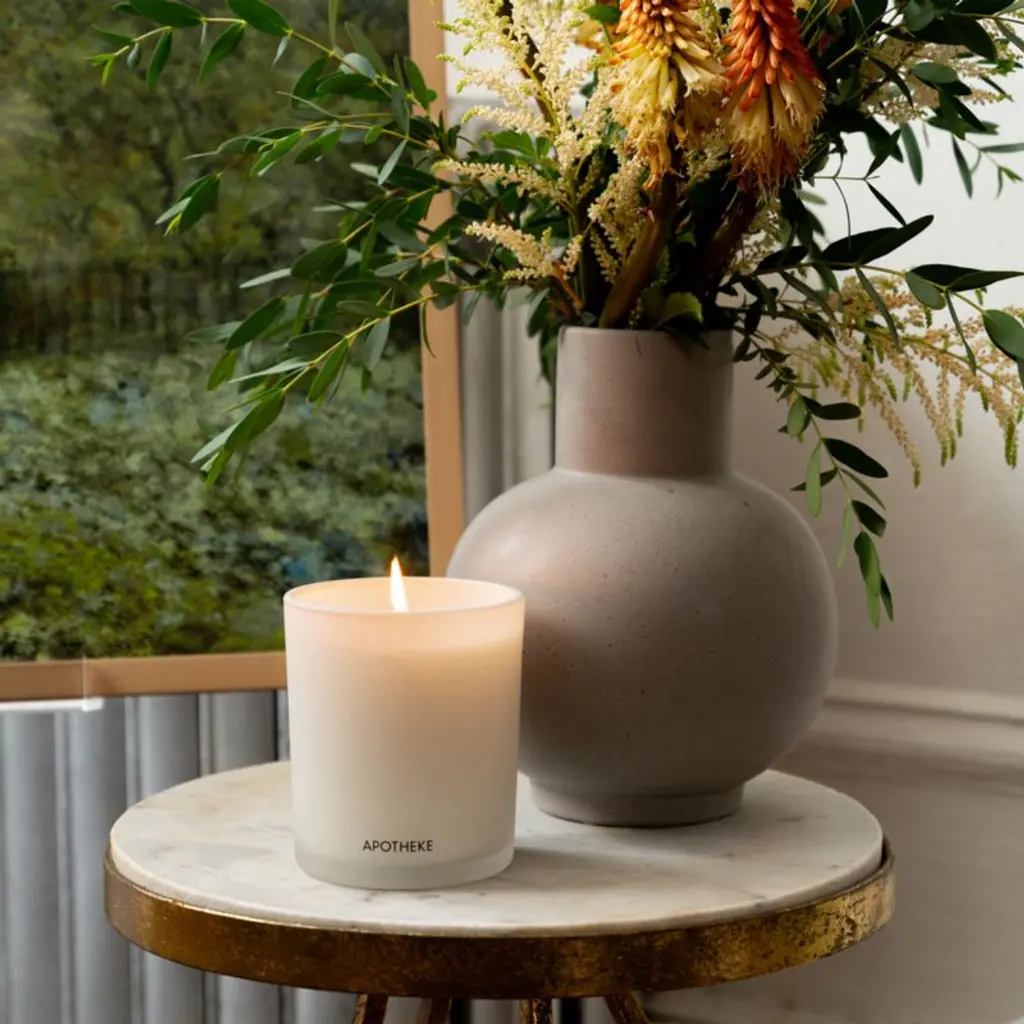 This hand-poured candle fills the room with sultry scents. Infused with essences of cashmere, eucalyptus, lilac, vetiver, sandalwood, amber and cedarwood, the soy-blend wax candle burns for many hours releasing a rich, earthy fragrance. The beautifully minimalist design of the frosted glass vessel and the box it's packaged in make this candle an elegant gift.