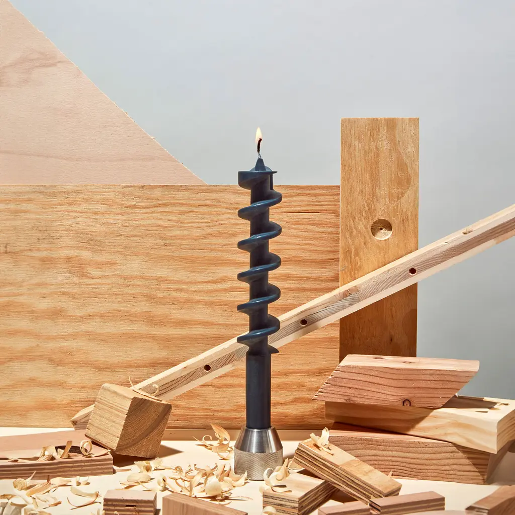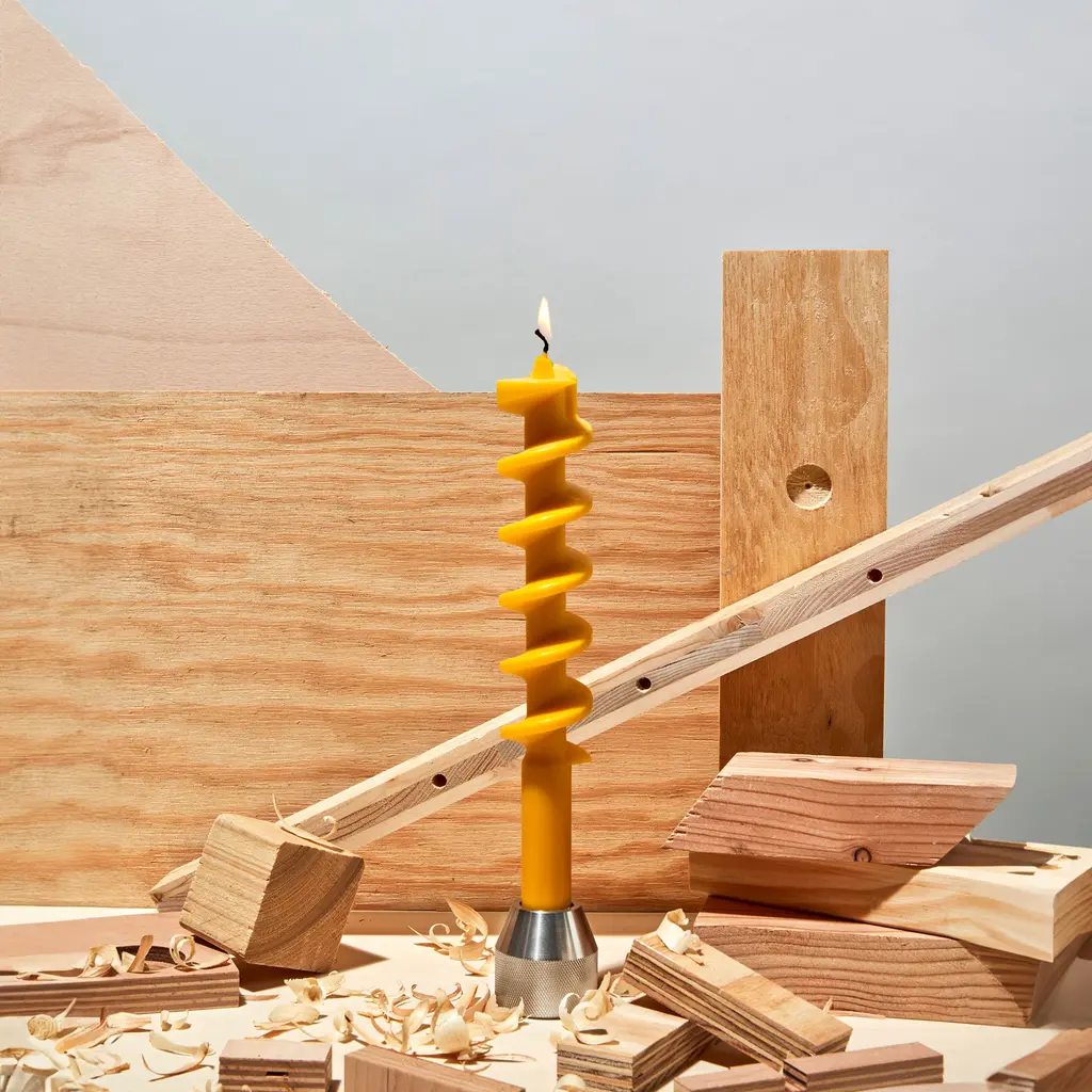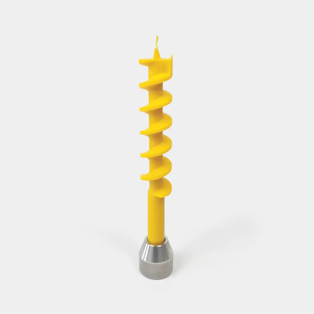 Reimagining industrial tools as decorative objects, the 54 Celsius Drill Bit collection offers the perfect solution to add an edgy accent to a room’s decor. The Auger Drill Bit candle recreates the silhouette of its eponymous source of inspiration. Crafted with care from a blend of soy and beeswax, the candle boasts clean lines and precisely cut shapes that spiral in a dynamic shape culminating with the wick. When lit, the candle drips beautifully and has a burning time of approximately 6-7 hours. Each Auger Drill Bit Candle fits standard candle holders and comes with an elegant gift box that is both recyclable and biodegradable. Available in Gray, White and Yellow versions.