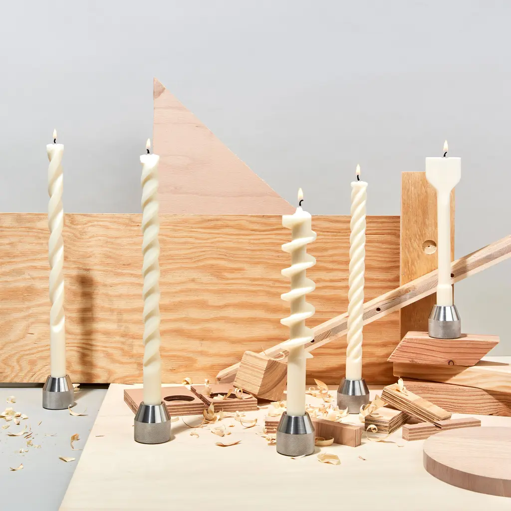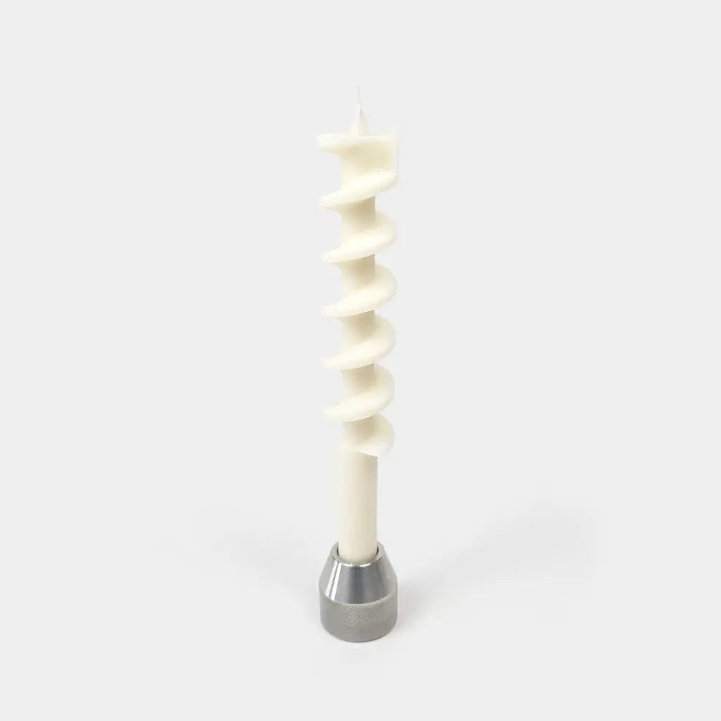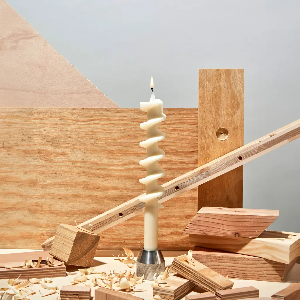 Reimagining industrial tools as decorative objects, the 54 Celsius Drill Bit collection offers the perfect solution to add an edgy accent to a room’s decor. The Auger Drill Bit candle recreates the silhouette of its eponymous source of inspiration. Crafted with care from a blend of soy and beeswax, the candle boasts clean lines and precisely cut shapes that spiral in a dynamic shape culminating with the wick. When lit, the candle drips beautifully and has a burning time of approximately 6-7 hours. Each Auger Drill Bit Candle fits standard candle holders and comes with an elegant gift box that is both recyclable and biodegradable. Available in Gray, White and Yellow versions.