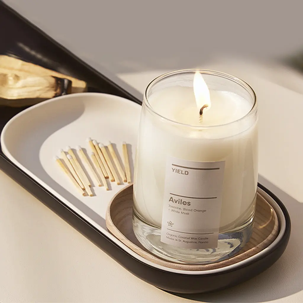 Tropical fruit, floral scents, and smoky notes combine in the Yield candle collection. Inspired by the historical coastal town of Saint Augustine in Florida, Avilés 6oz recreates the scent of spring in a candle format. The notes range from blood orange to jasmine and white musk, blending floral and hints of citrus in a lush perfume. A perfect choice to relax after a long day or to add a delicate finishing touch to a room’s atmosphere. Like all the other Yield candles, Avilés features American grown soy wax and a blend of essential and fragrance oils. The cotton wick ensures a clean burn. This 6oz candle has a burning time of 40-45 hours.