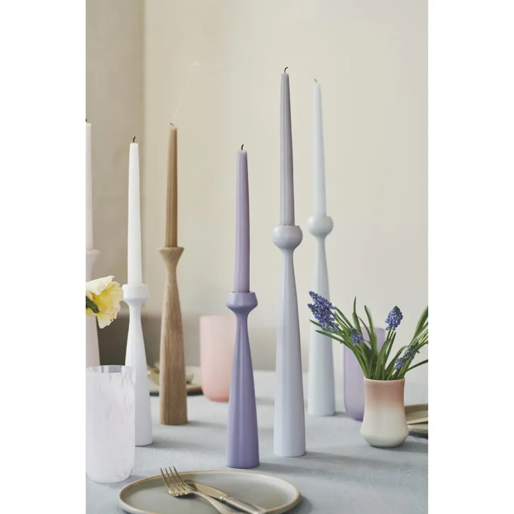 Applicata's Blossom candles are the perfect partner for the wooden candleholders in the Blossom series, but they are also suitable for other candlesticks as well. Hand-made and hand-dyed in Denmark, the Blossom candles are made of pure paraffin wax and feature a self-extinguishing cotton wick: when the wick runs short, the flame goes out automatically. The delicate shades of the Blossom candles add an irresistibly elegant touch to both everyday and more festive table settings, and they also brighten up the interior in a bedroom or living room, for example.