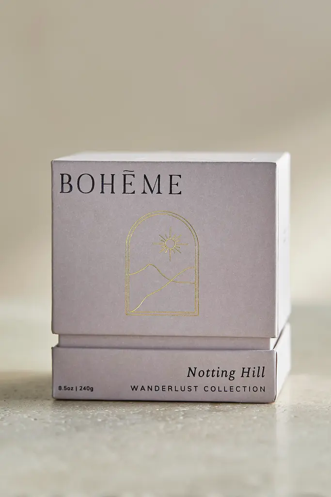 The wanderlust collection captures a quest for adventure, calling to far-flung destinations across the globe. From the bustling energy of the world’s great cities to the blissful peace of untouched nature, the only guidance is the unique, the genuine, and the unforgettable. Each candle is a snapshot of a perfect moment in a singular destination, a sensory journey that ignites passion and nourishes the soul. Scent NotesJoshua Tree yellow): Top: bergamot, agave; Middle: tuberose, cactus blossom; Base: desert sands accord, amber, patchouli, incense Tahiti (orange): Top: sea salt, ozone, hibiscus leaf; Middle: frangipani, tiare, strawberry, gardenia, coconut; Base: driftwood, white amber, musk Notting Hill (purple): Top: Earl Grey Tea, Bergamot, Black Currant, Middle: Honeysuckle, Rose, Carnation, Peony; Base: Vetiver, Moss, Amber, Cedarwood About Boheme Fragrances: A purposeful and sustainable, female founded, fragrance brand that celebrates the spirit of the modern bohemian woman. We handcraft each of our fragrances with the utmost attention to detail, using only the finest, ethically sourced ingredients. Fragrances that are designed to evoke the spirit of exploration and the drive to live adventurously.