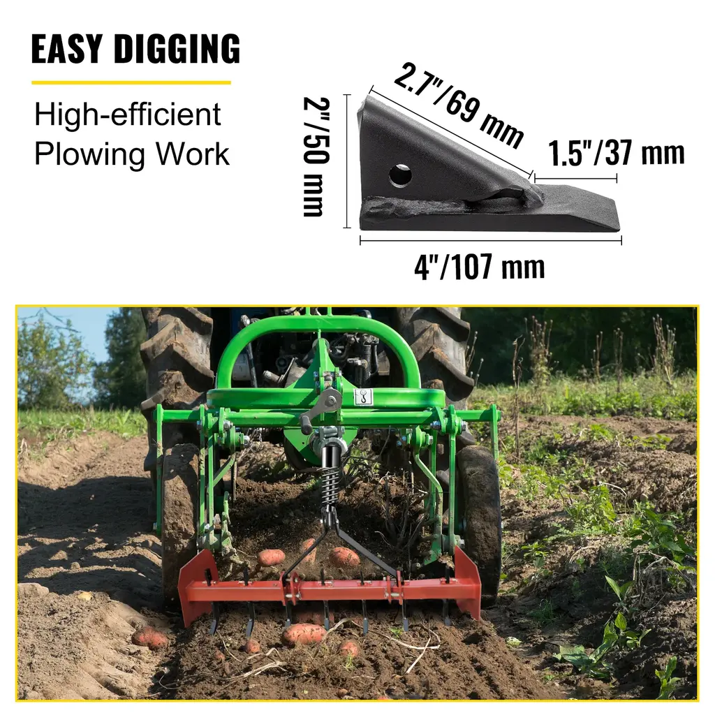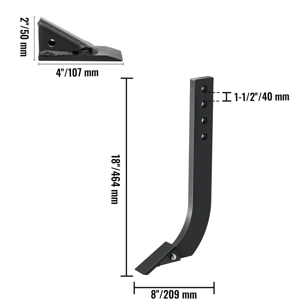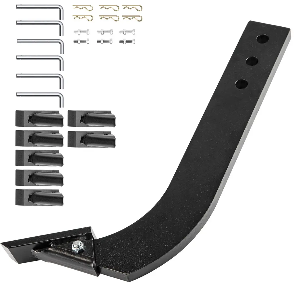 【HASSLE-FREE ASSEMBLY】- Shank Height: 18" (4 holes option) / 16" (3 holes option). Shank Width: 8''. We provide a complete set of mounting fittings. The box blade can be easily attached to the tractor via the four-point holes without any complicated procedure. 【ADJUSTABLE SHANK】- Hole Interval: 1-1/2". Hole Diameter: 5/8''. Each shank has four-position adjustment holes that pin to the reinforced frame for maximum efficiency. You could adjust it according to your specific needs. 【HEAVY-DUTY STEEL】- Our box blade is made of premium quality steel for excellent durability and reliability. It is powder-coated, making it long-lasting and rust-proof. 【REMOVABLE & REPLACEABLE】- Tooth Length: 4". Tooth Height: 2". The box blade is a very maneuverable tool that does the work of several implements. There are two to eight replaceable teeth for your flexible use. 【EXTENSIVE USE】- Box blades are designed for rugged use by landscapers, farmers, and homeowners. They are great for landscaping, land leveling, back-filling, grading, etc. 5pcs option Package Content 5 x Shank 7 x Teeth 5 x Set of Mounting Hardware 4pcs option Package Content 4 x Shank 6 x Teeth 4 x Set of Mounting Hardware 1pcs option Package Content 1 x Shank 2 x Teeth 1 x Set of Mounting Hardware 6pcs option Package Content 6 x Shank 8 x Teeth 6 x Set of Mounting Hardware