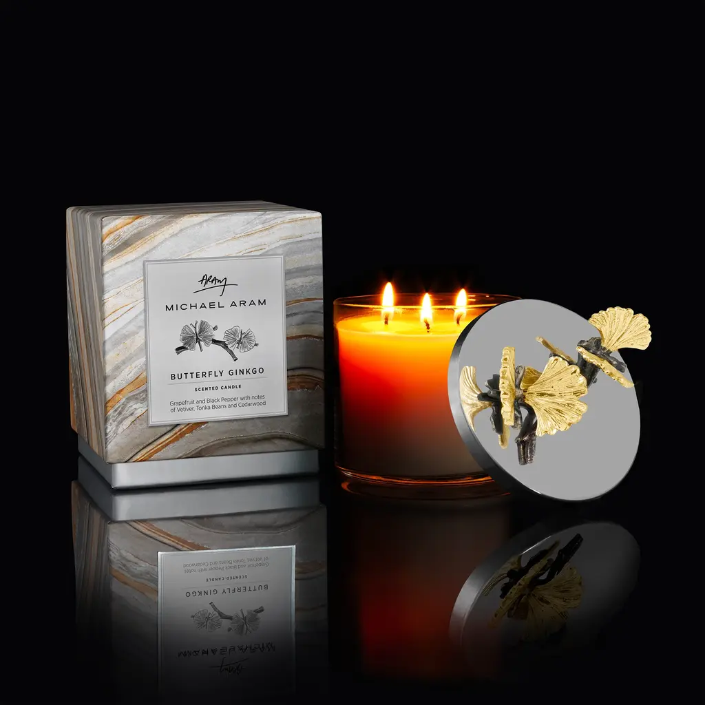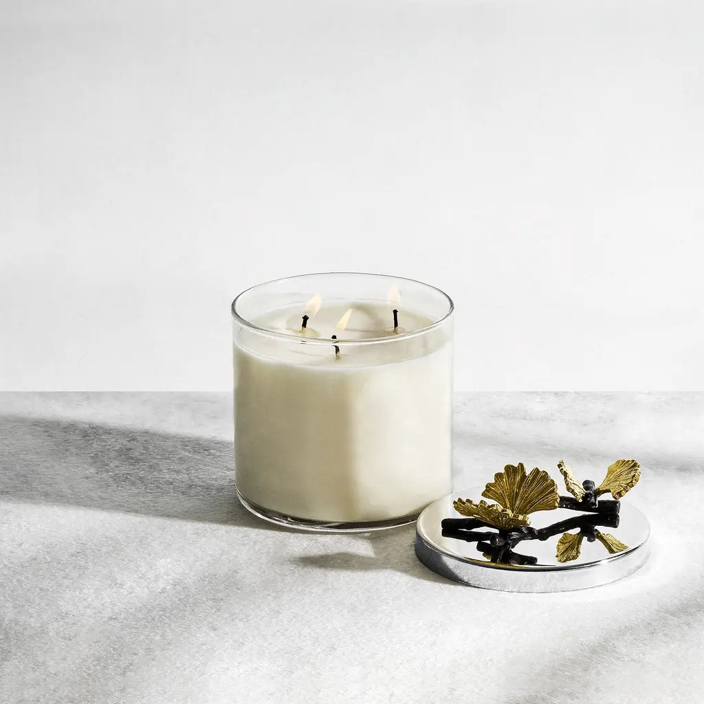 Known for its delicate leaves that resemble butterflies at rest before taking flight, the gingko biloba tree was the muse behind Michael Aram's sculptural, handcrafted Butterfly Ginkgo candle. A crisply fresh scent creates an indulgent escape.
