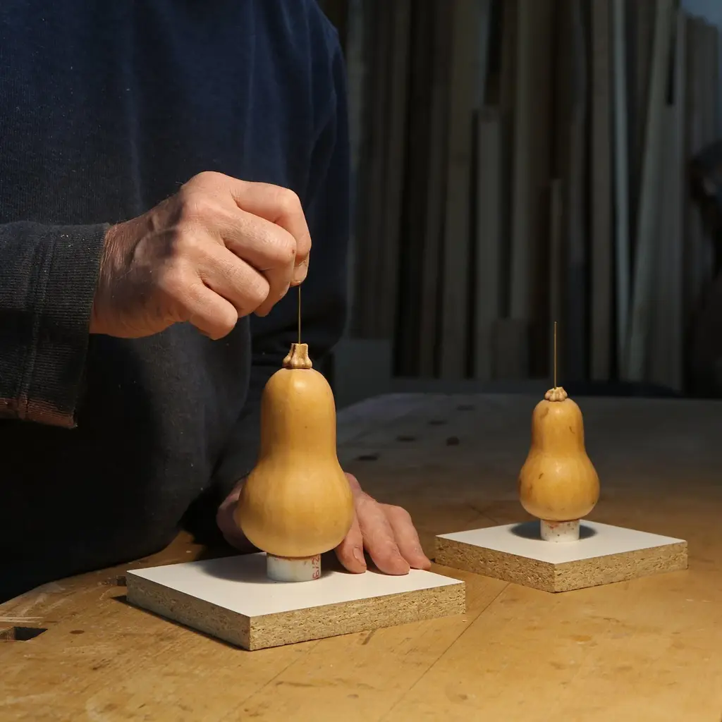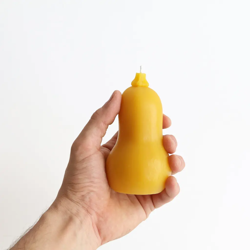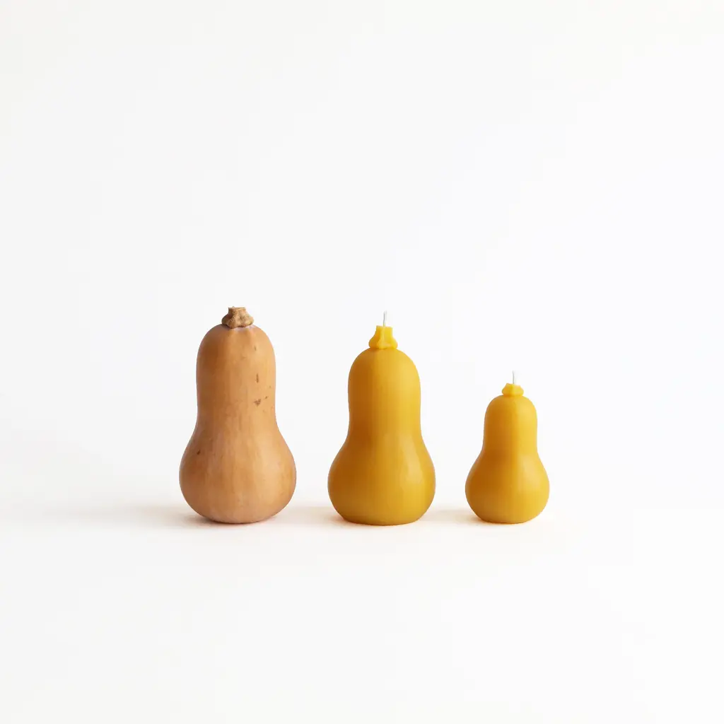Bring the warmth of nature indoors with Artifaqt’s Butternut Squash Beeswax Candles, molded from real butternut squash grown in the studio garden during the summer of 2023. Handcrafted from pure beeswax sourced in southeastern Pennsylvania, these candles burn cleanly, brightly, and for longer than most, while releasing a subtle, natural aroma. Available in two sizes—small (3.5″ x 2″) and large (5″ x 2.5″)—or as a set, these candles make a thoughtful gift for veggie lovers, candle enthusiasts, or anyone who appreciates unique home accents. Whether displayed as decor or lit to create a cozy ambiance, they’re a simple yet charming way to enjoy nature’s design.