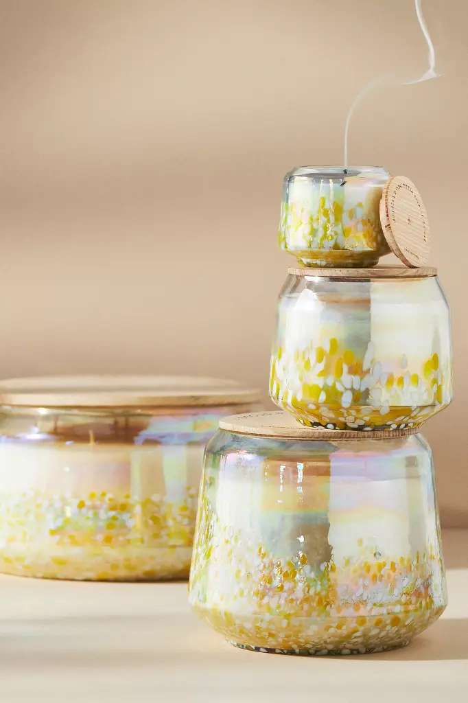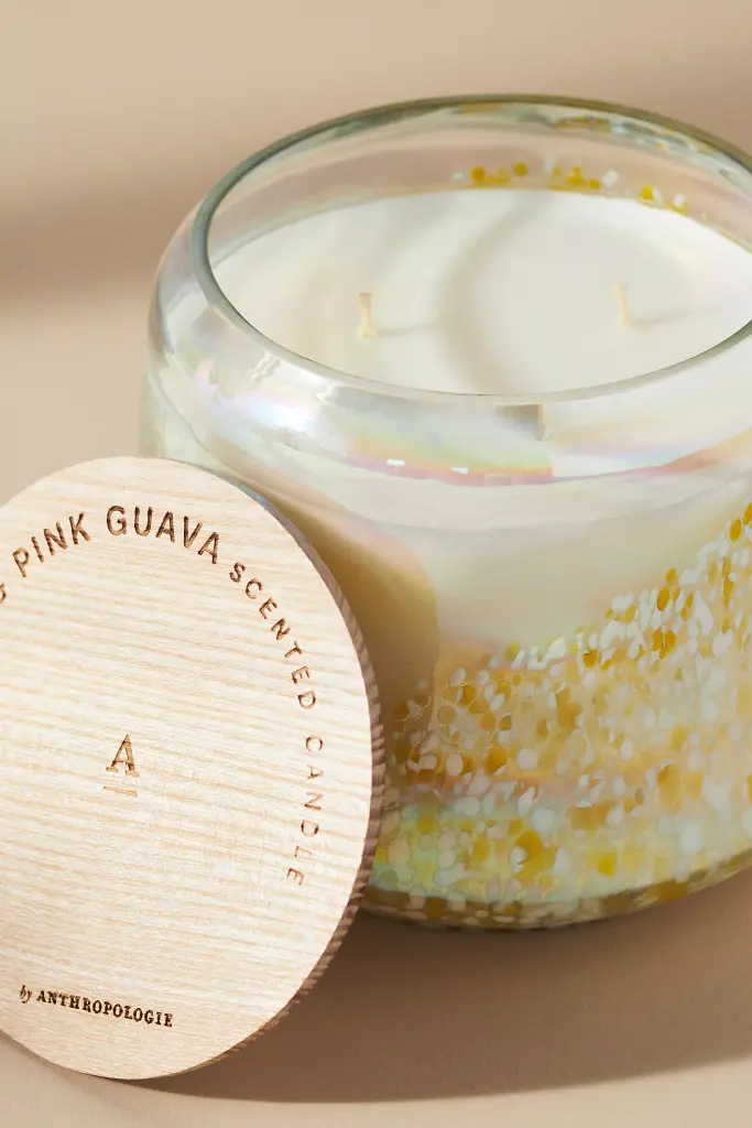 By Anthropologie Fresh Hibiscus & Pink Guava Glass Jar Candle