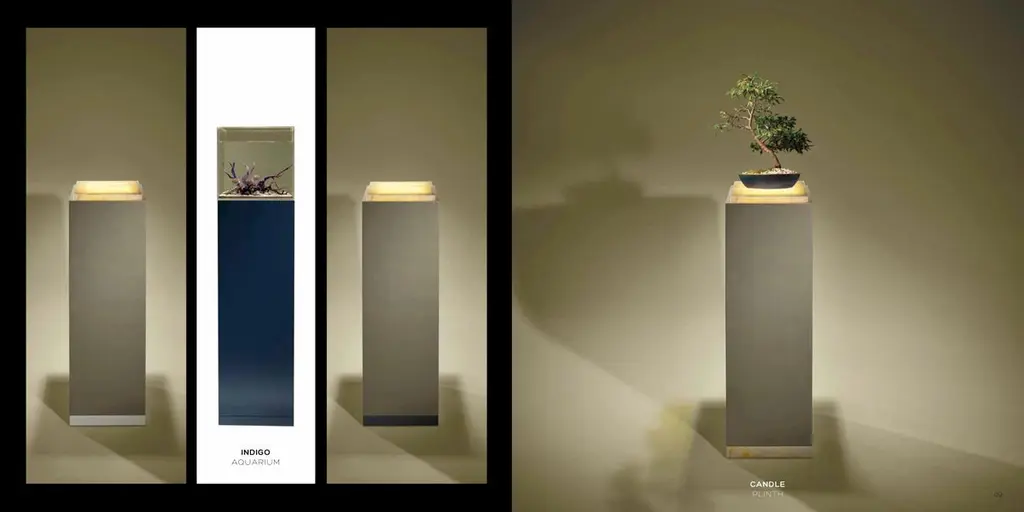 Contemporary candle plinth all lacquered with top ónix and lighting.Bespoke / CustomizableIdentical shapes with different sizes and finishings.All RAL colors available. (Mate / Half Gloss / Gloss)