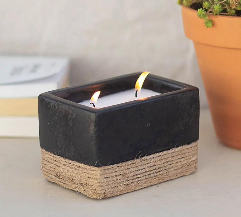 Crafted in a modern rectangular shape, these citronella candles add extra glow to your patio while keeping bugs at bay. They have a nice, even burn thanks to their high-quality paraffin wax and two cotton wicks and the cement containers keep the look decorative. For maximum coverage, space the candles 18–36 inches apart around the perimeter of your outdoor space.