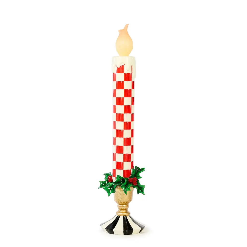 Add MacKenzie-Childs signature charm to your Christmas season with the Check It Out Illuminated Small Trophy Candle. It's sure to add the perfect glow to your front porch, featuring a stunning gold and Courtly Checked-bedecked candlestick base. Pair with the other Check It Out trophies for a statement-making display this holiday season.