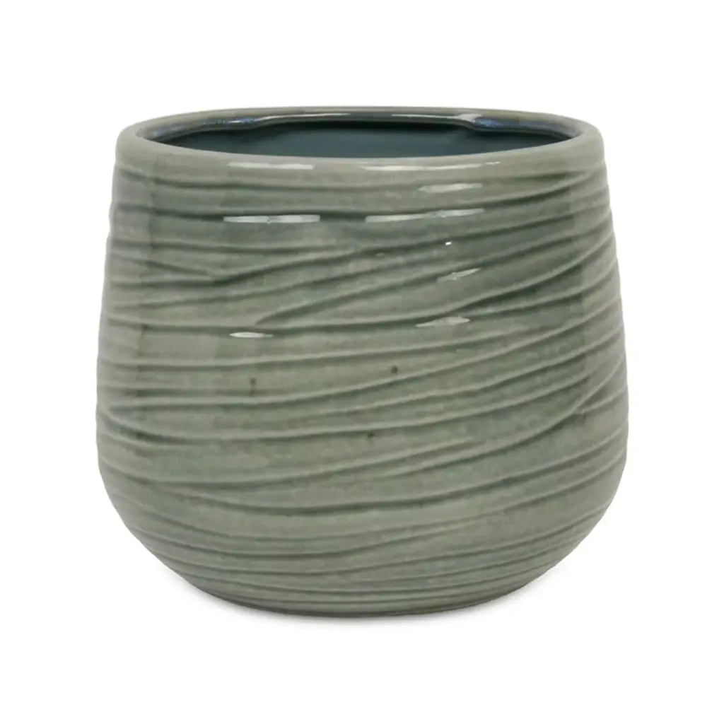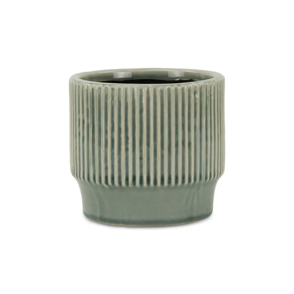 A diverse and dynamic home encompasses various types of materials to provide a well-bodied look. Ceramic has been a tried and true material with a fresh modern look for the homes of today. This dark gray pot in particular features a smooth top rim with a tapering body and a repeating vertical lined pattern that adds interest to the design. Bring a new element into your space with this ceramic piece and let it complete the look of your home or office.