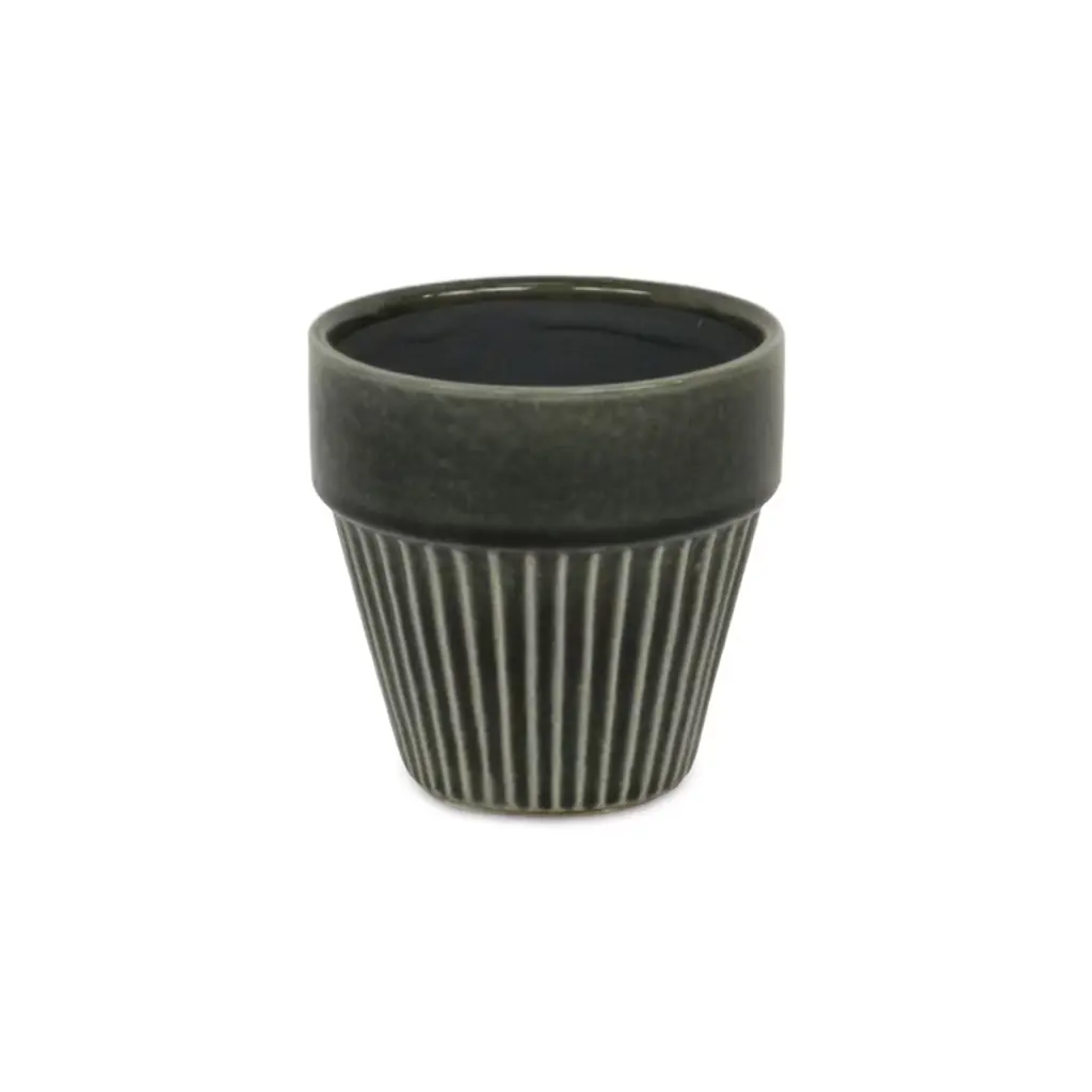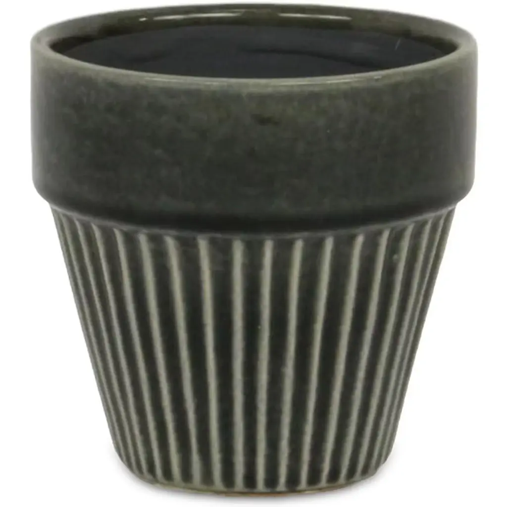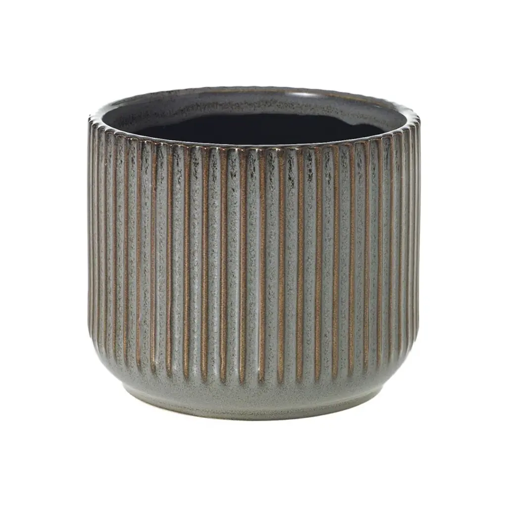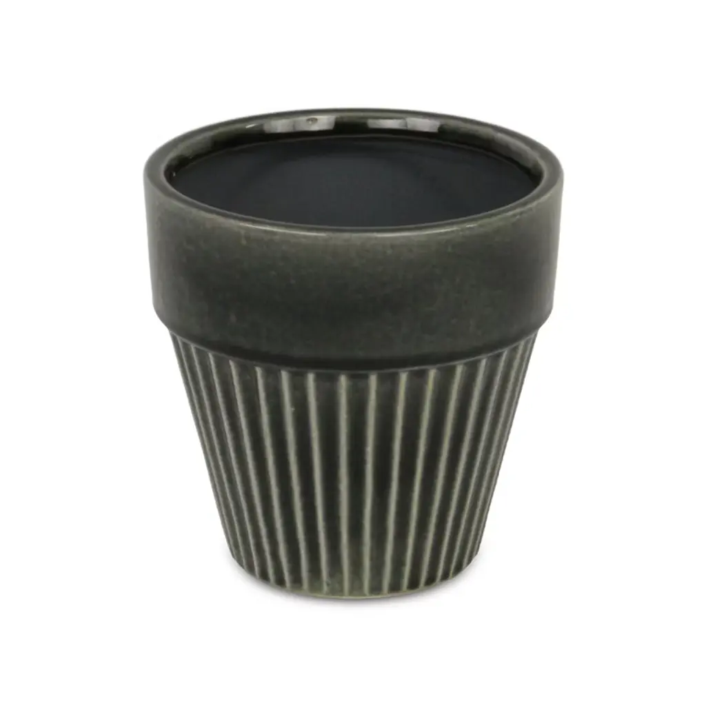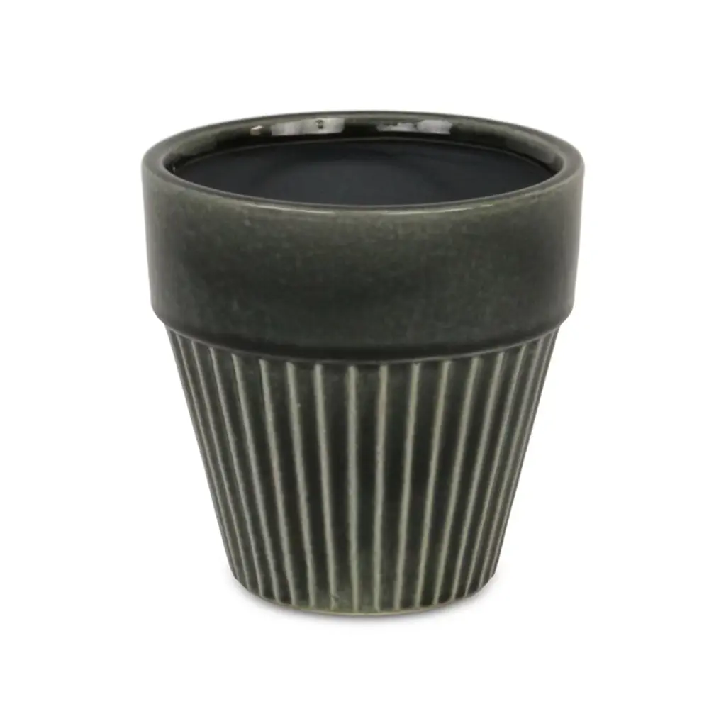 Cheung's Corseta Tapered Vertical Lined Pattern Ceramic Pot - Large - Dark Gray
