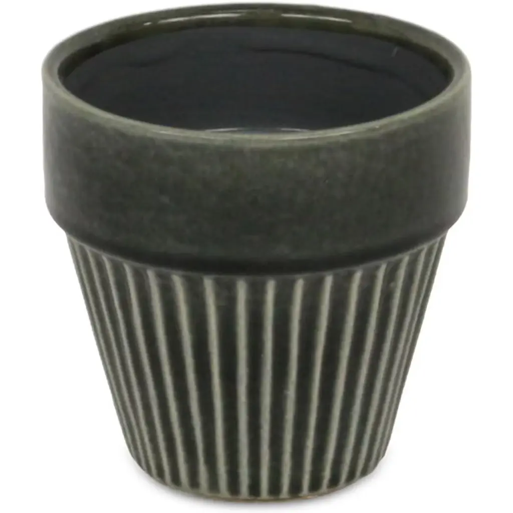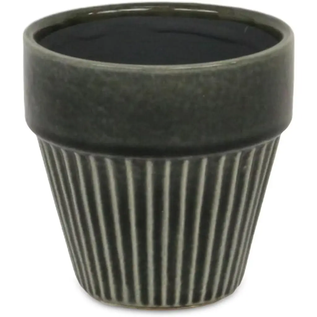 Cheung's Corseta Tapered Vertical Lined Pattern Ceramic Pot - Small - Dark Gray