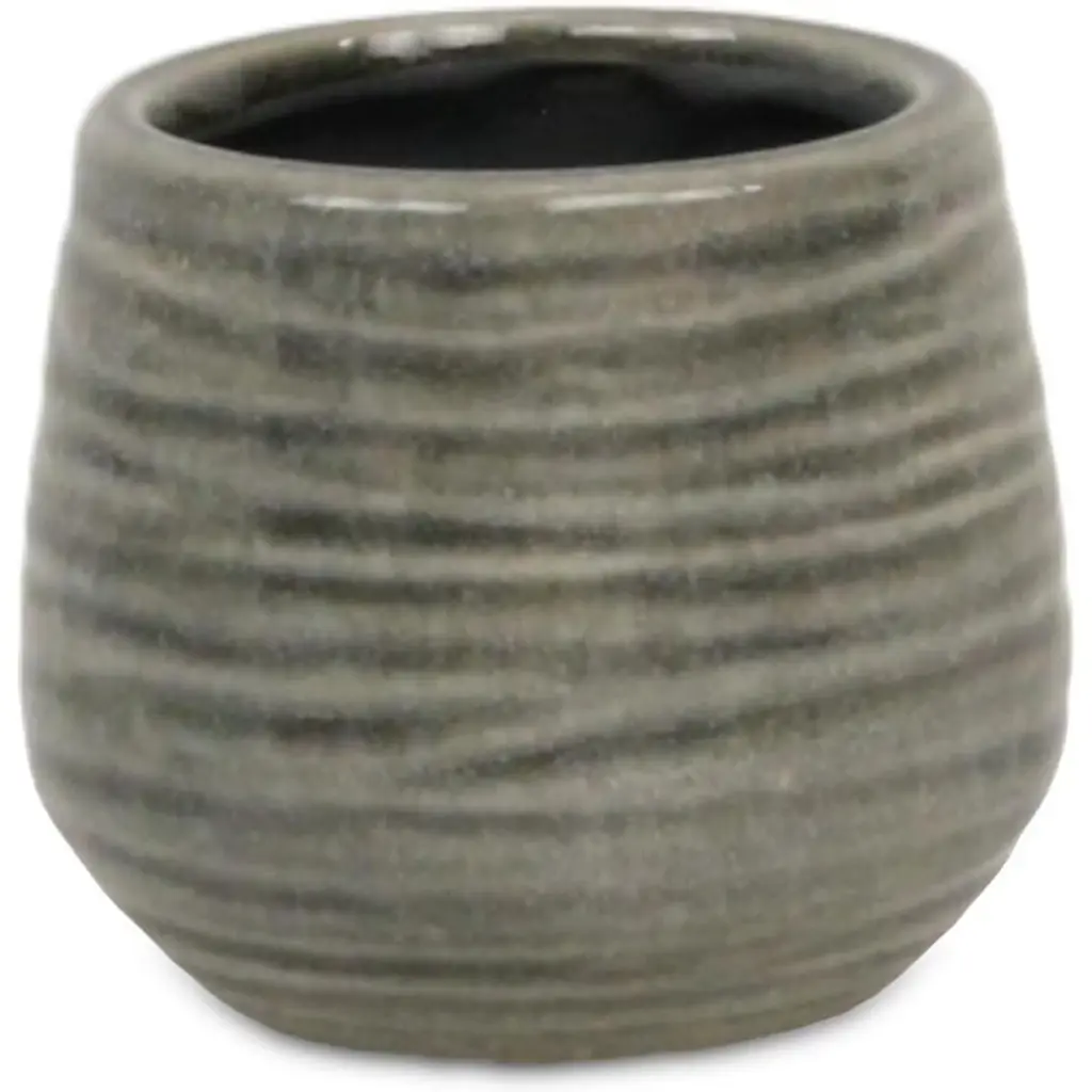 A diverse and dynamic home encompasses various types of materials to provide a well-bodied look. Ceramic has been a tried and true material with a fresh modern look for the homes of today. This dark gray pot in particular features a smooth top rim with a tapering body and a repeating vertical lined pattern that adds interest to the design. Bring a new element into your space with this ceramic piece and let it complete the look of your home or office.