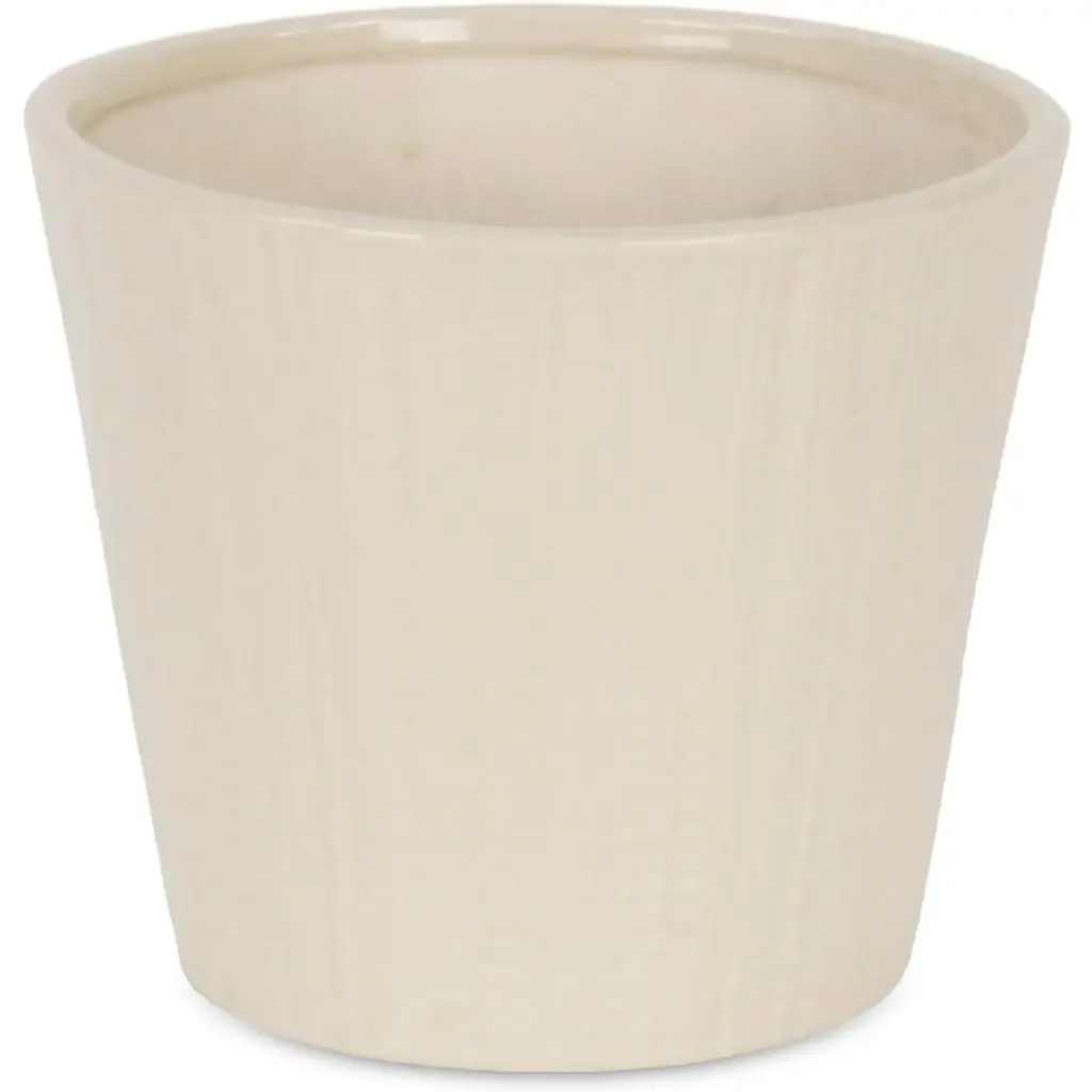 Cheung's Currula Tapered Vertical Dotted Pattern Ceramic Pot - Large - Off White