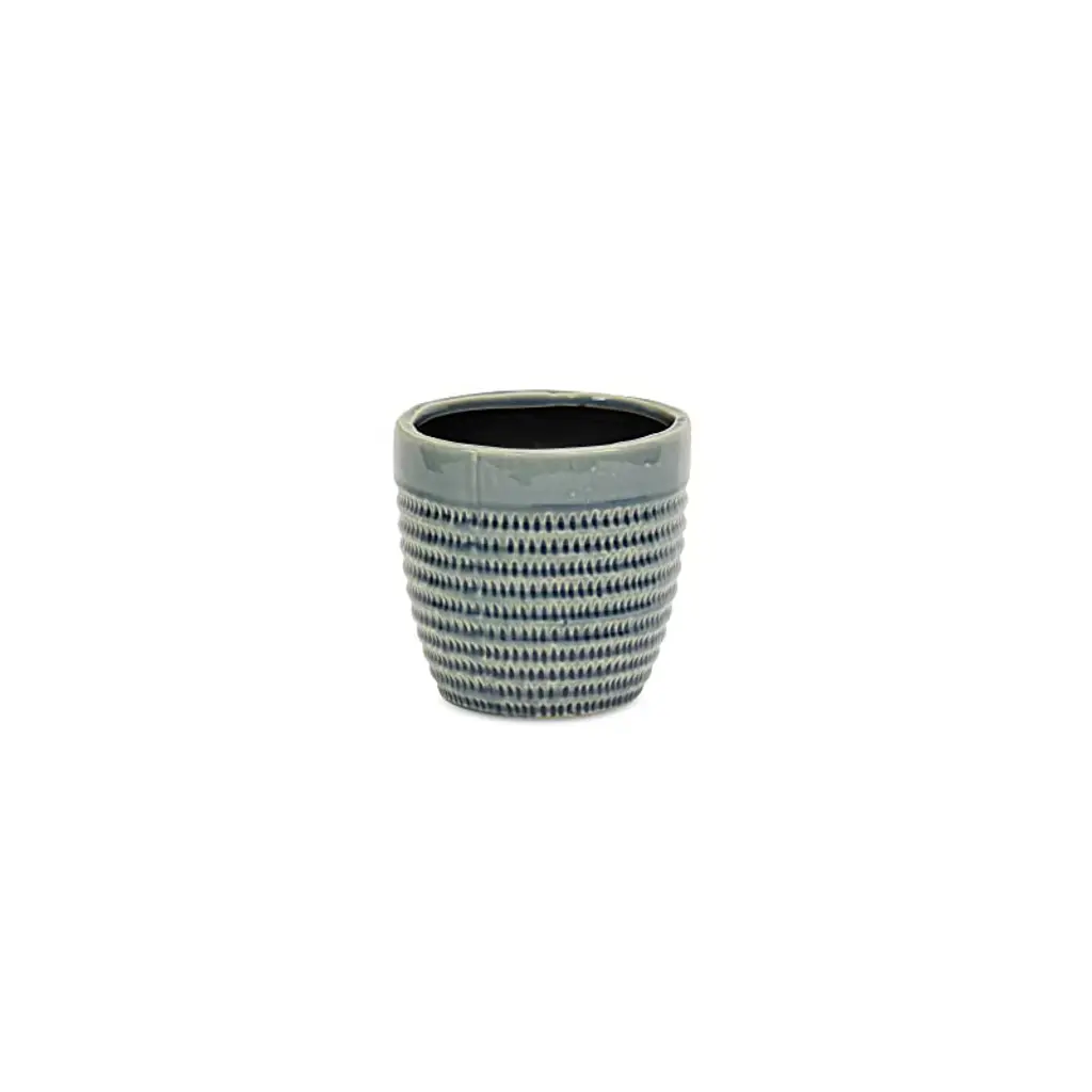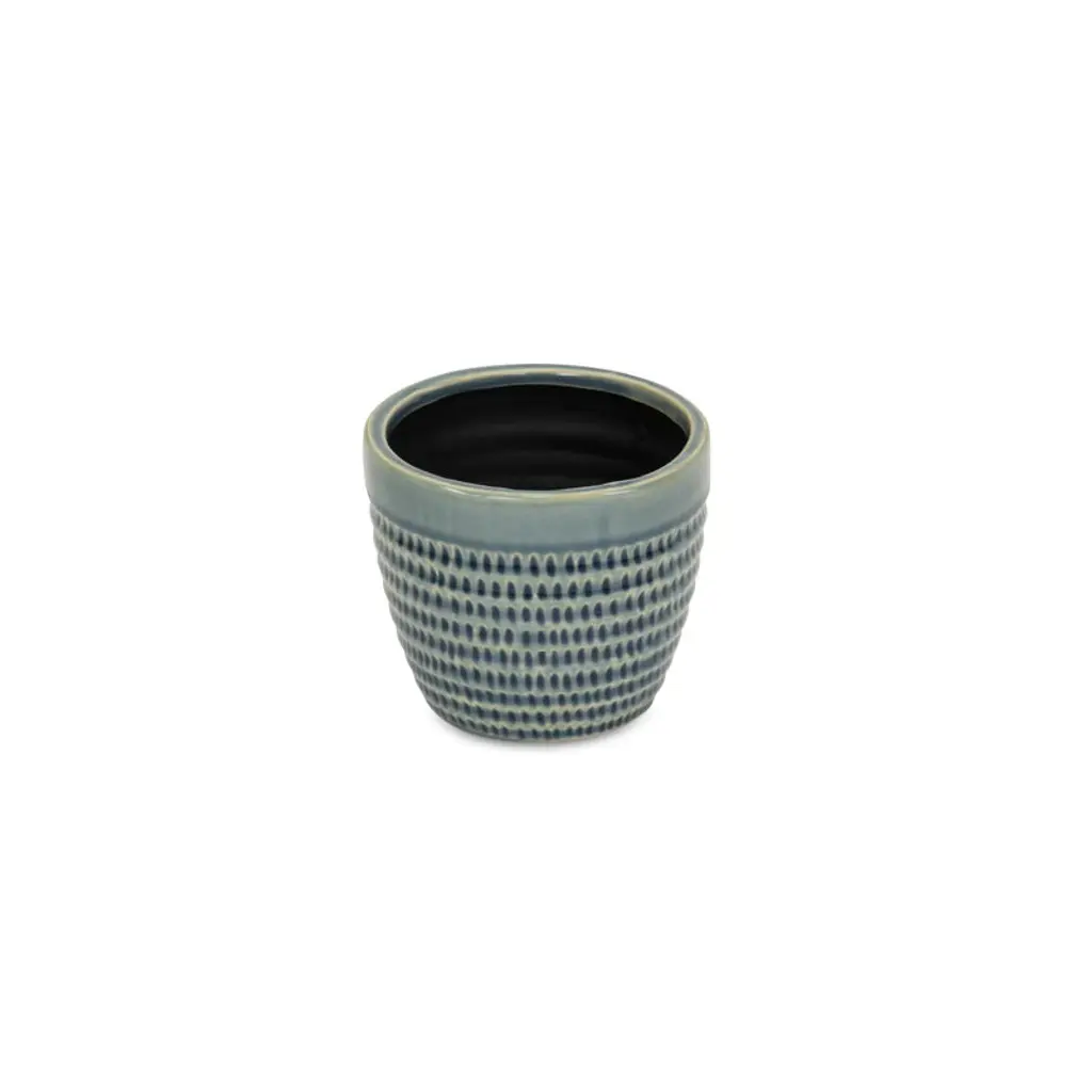 Bring home a natural touch that complements outdoor themes and lush looks. Made from ceramic materials to create a unique look, this piece features a tapered body with a dotted patterned body, all in a blue-toned finish. Let it complete your space today and add an eye-catching element!