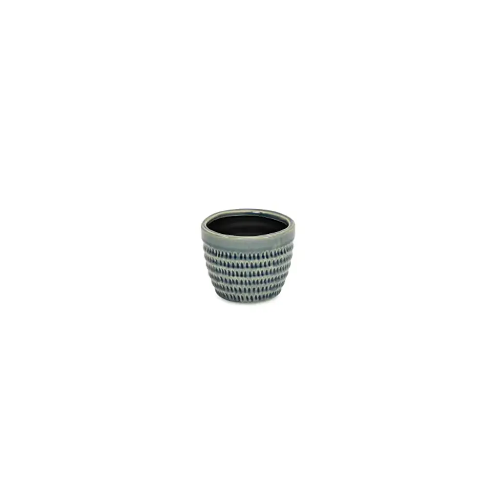 Bring home a natural touch that complements outdoor themes and lush looks. Made from ceramic materials to create a unique look, this piece features a tapered body with a dotted patterned body, all in a blue-toned finish. Let it complete your space today and add an eye-catching element!