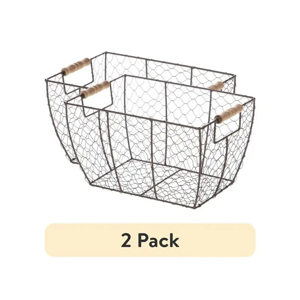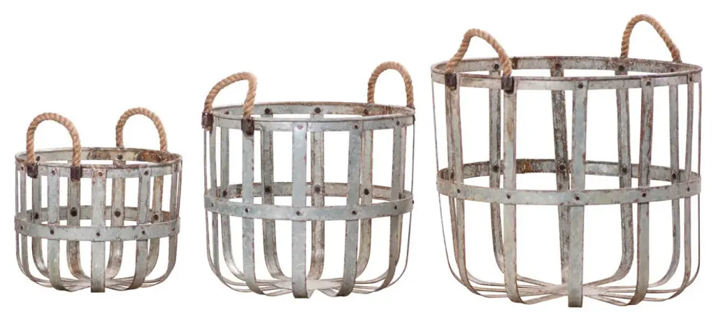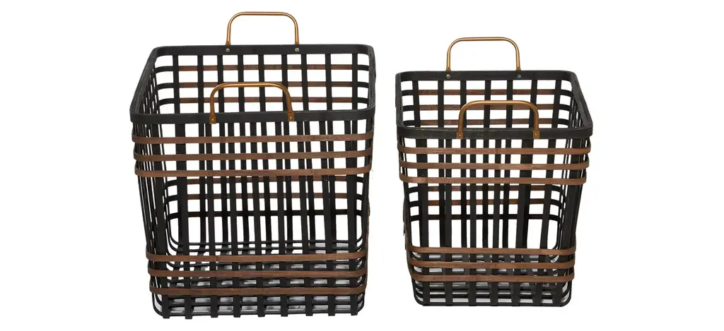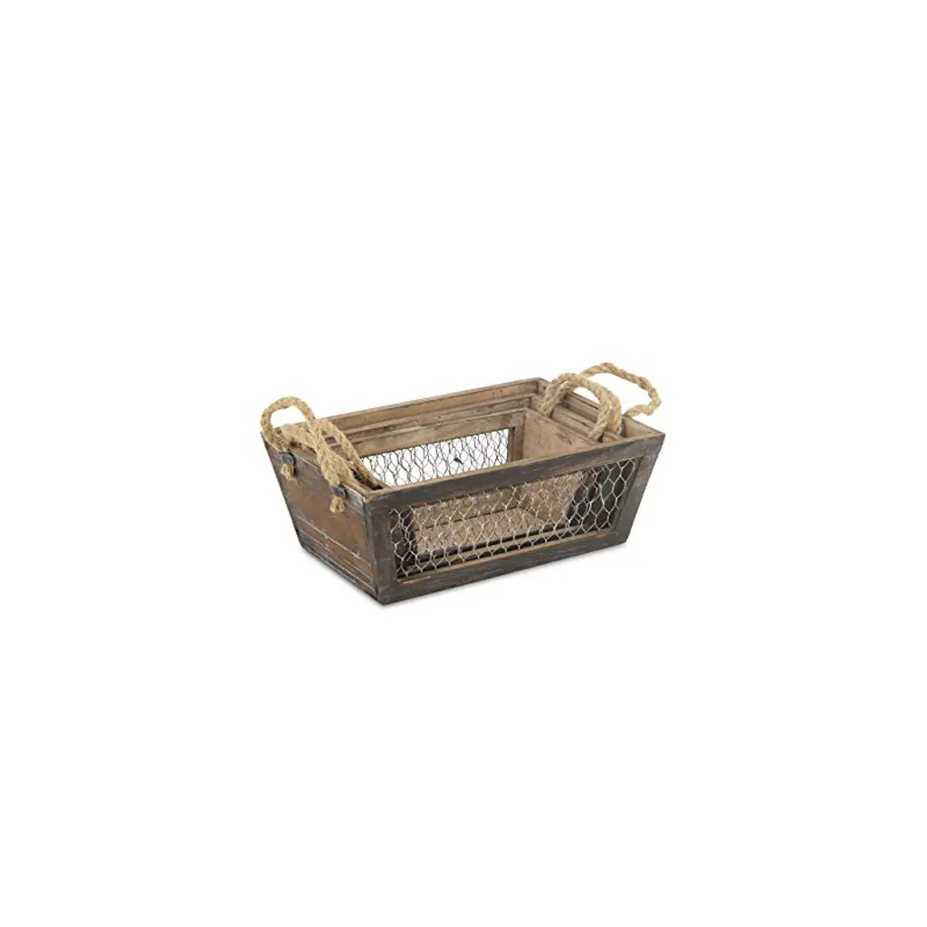 A stylish set of crates has been a timeless addition to every home. Serving a variety of uses from storage to decorative center pieces, crates have remained a stable addition to the American dream home. This piece features a large, medium and small set, all in a dark brown finish with a front and back wire mesh pattern. Side rope handles enhance the look while adding functionality. With its blend of style and functionality, these crates will be a wonderful addition to your home or space.