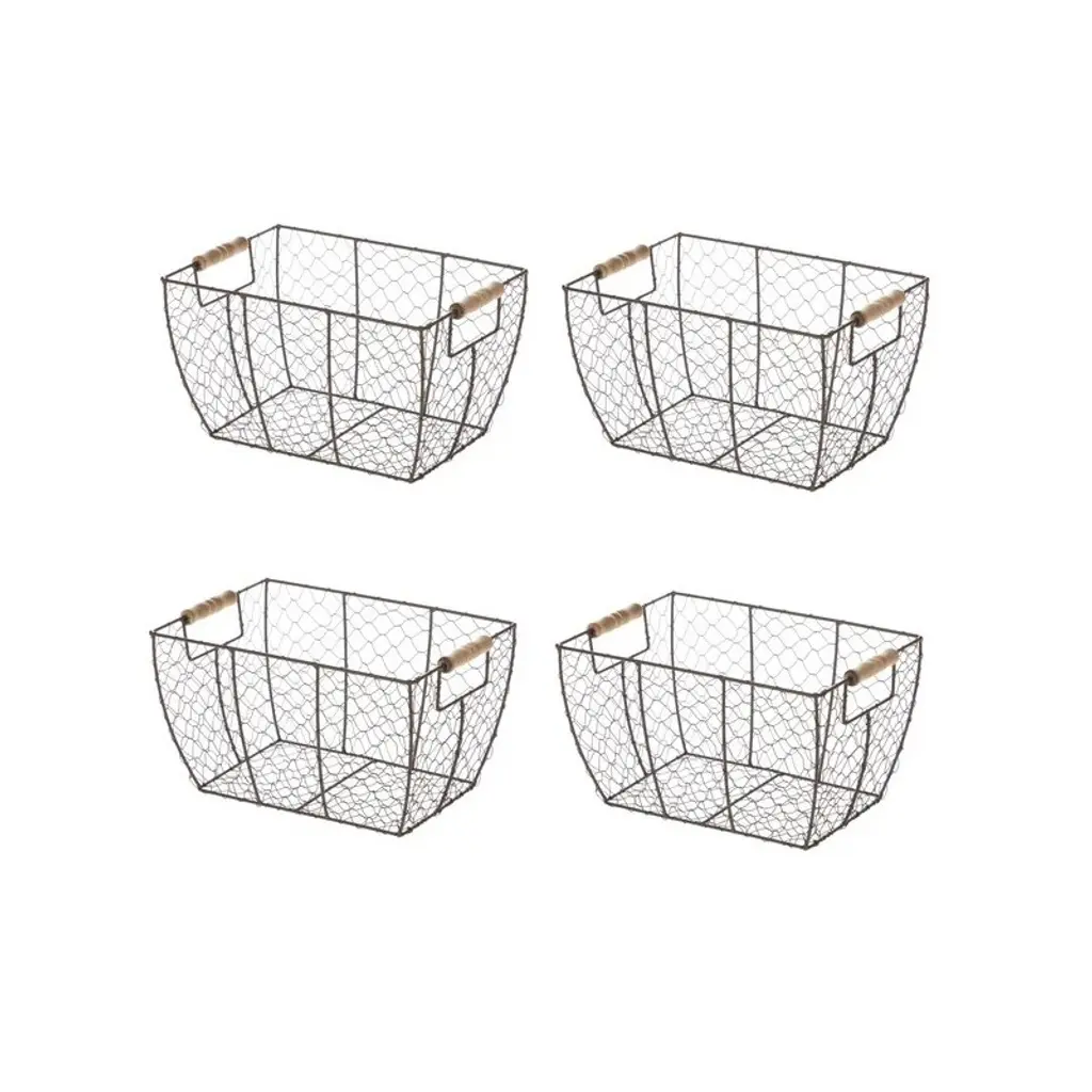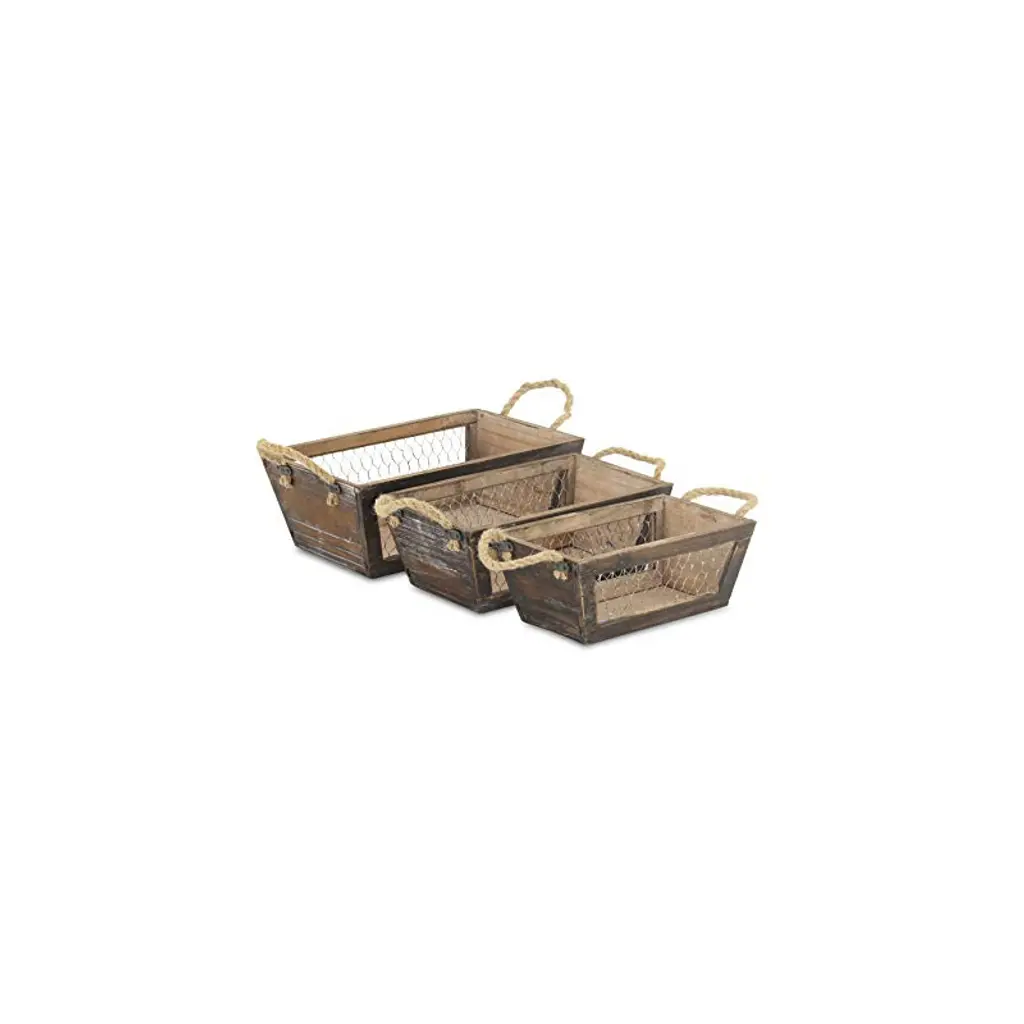 Cheung's Irona Set Of 3 Tapered Wood & Wire Crates - Brown