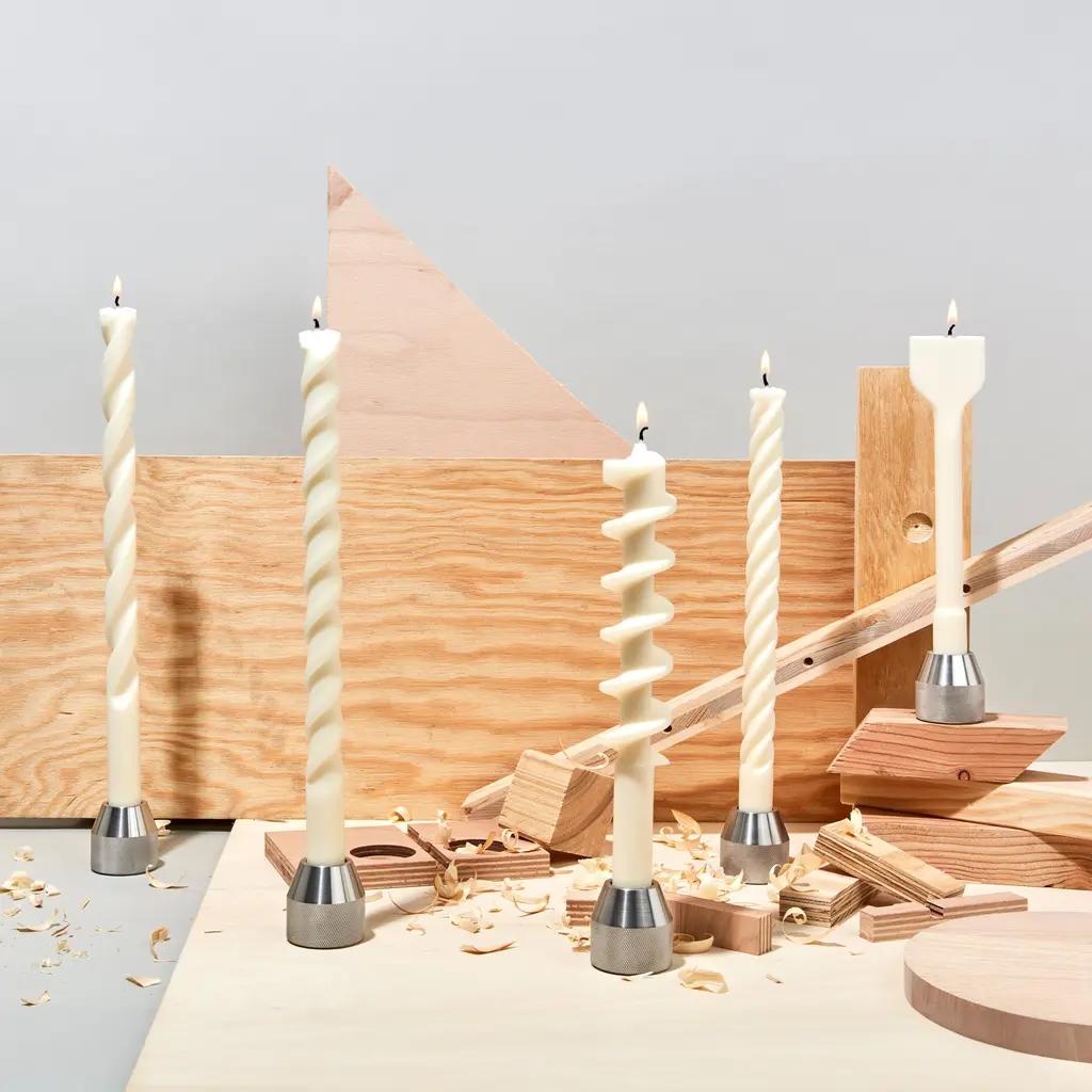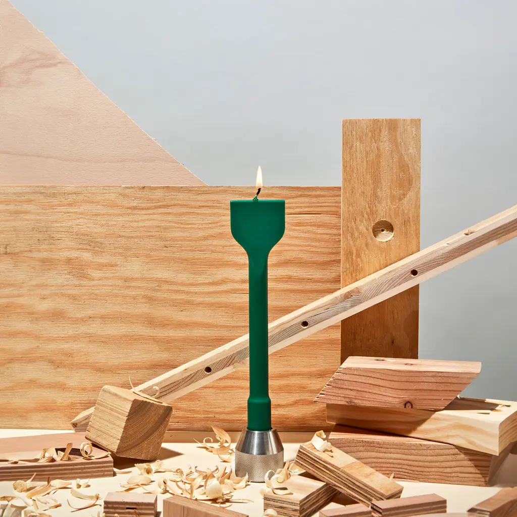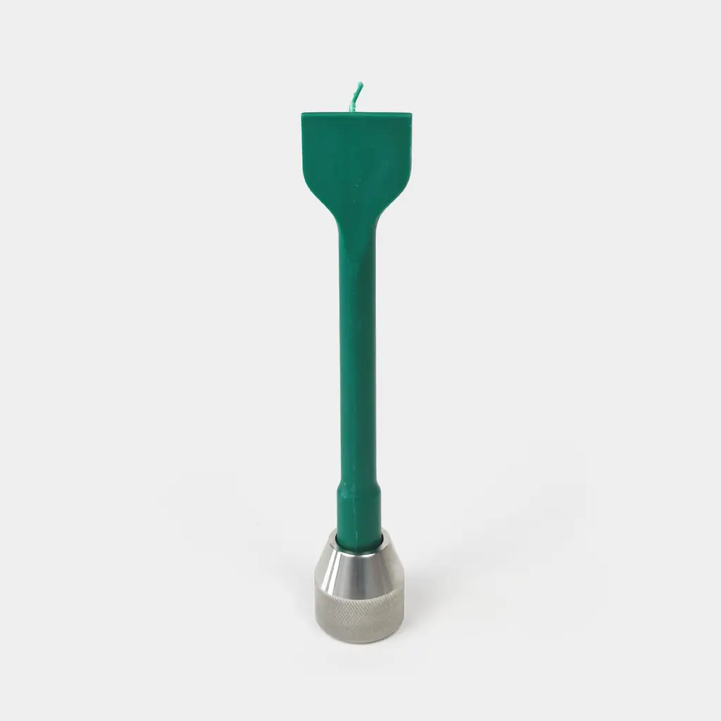 The ancient chisel transforms into a design object and creative candle in the Drill Bit collection. Designed by Lily Lanfermeijer and Joseph Hughes for 54 Celsius, the Chisel Drill Bit candle recreates the instantly recognizable utensil from a blend of soy wax and beeswax. Serving a dual purpose, the candle doubles as a decorative item and a mood-changing object at the same time. All Drill Bit candles fit into a standard candle holders. This one has a burning time of around 6-7 hours and has no scent. Choose your favorite Chisel Drill Bit from White, Gray and Green versions. Great as a gift, this modern candle comes with a beautifully designed gift box that is made from recyclable and biodegradable materials.