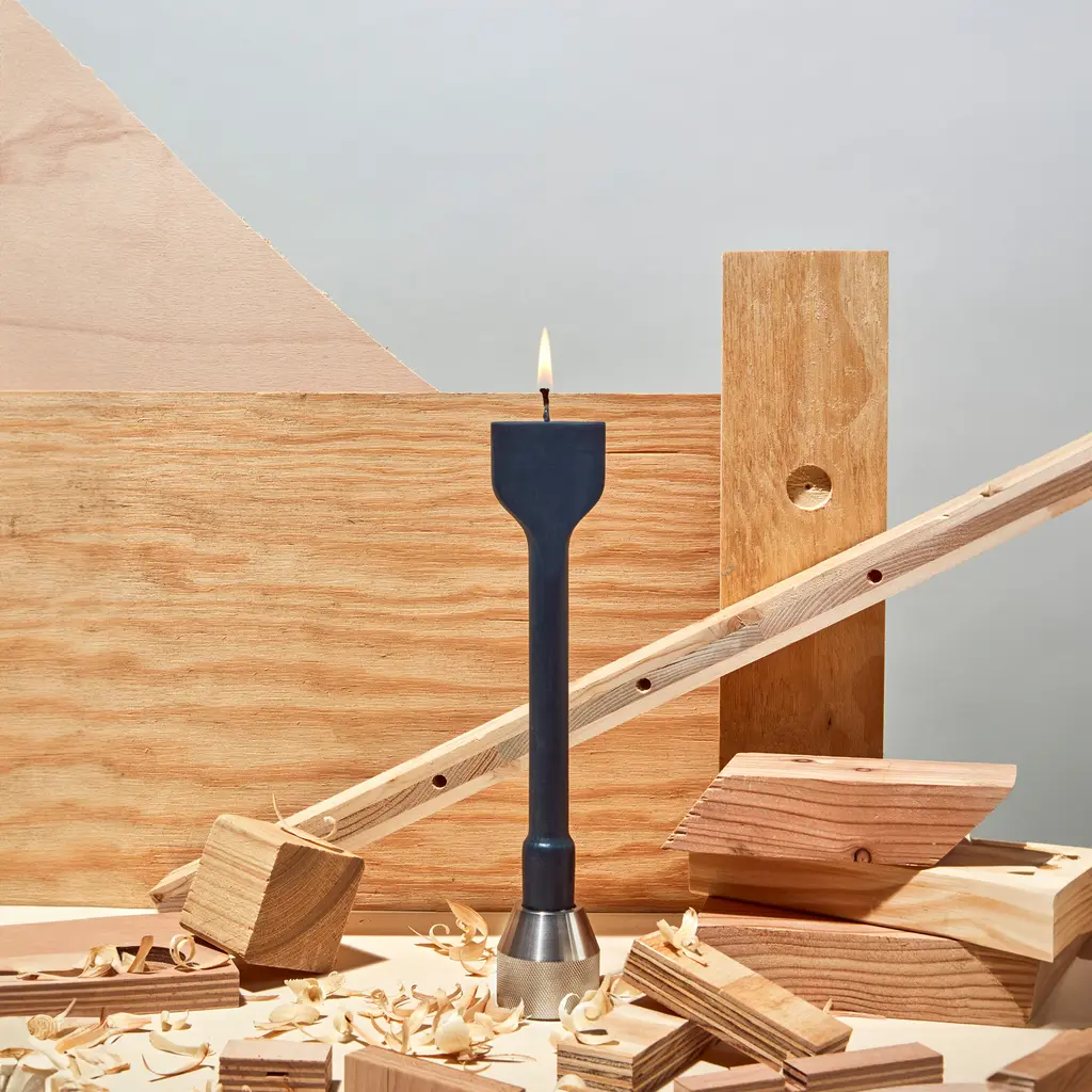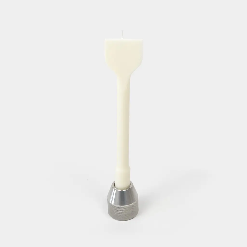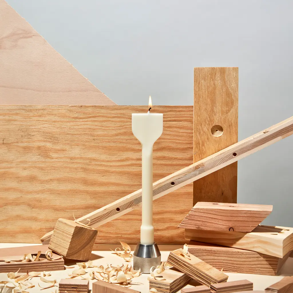 The ancient chisel transforms into a design object and creative candle in the Drill Bit collection. Designed by Lily Lanfermeijer and Joseph Hughes for 54 Celsius, the Chisel Drill Bit candle recreates the instantly recognizable utensil from a blend of soy wax and beeswax. Serving a dual purpose, the candle doubles as a decorative item and a mood-changing object at the same time. All Drill Bit candles fit into a standard candle holders. This one has a burning time of around 6-7 hours and has no scent. Choose your favorite Chisel Drill Bit from White, Gray and Green versions. Great as a gift, this modern candle comes with a beautifully designed gift box that is made from recyclable and biodegradable materials.