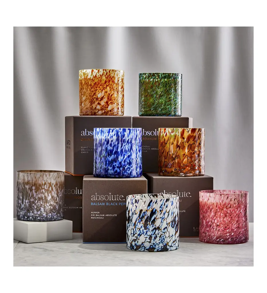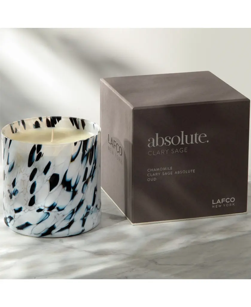 Named for their rare aromatic oils—known as absolutes—the exquisite fragrances of LAFCO's Absolute Candle Collection arrive in unique handblown glass vessels that reveal striking patterns when illuminated.