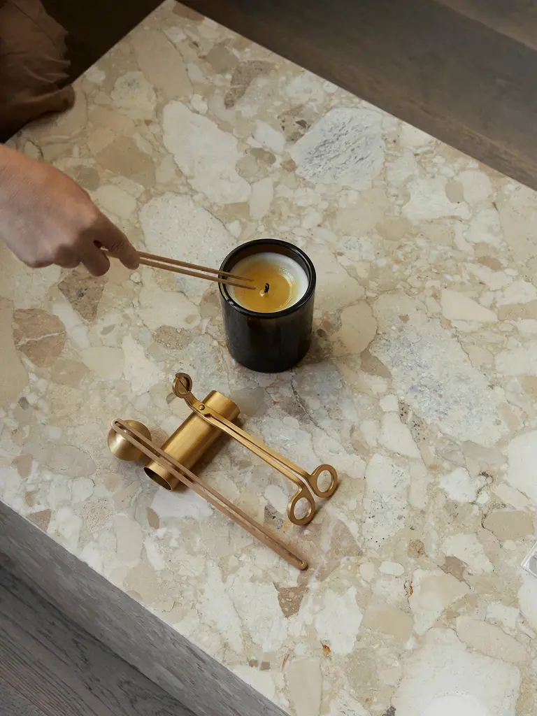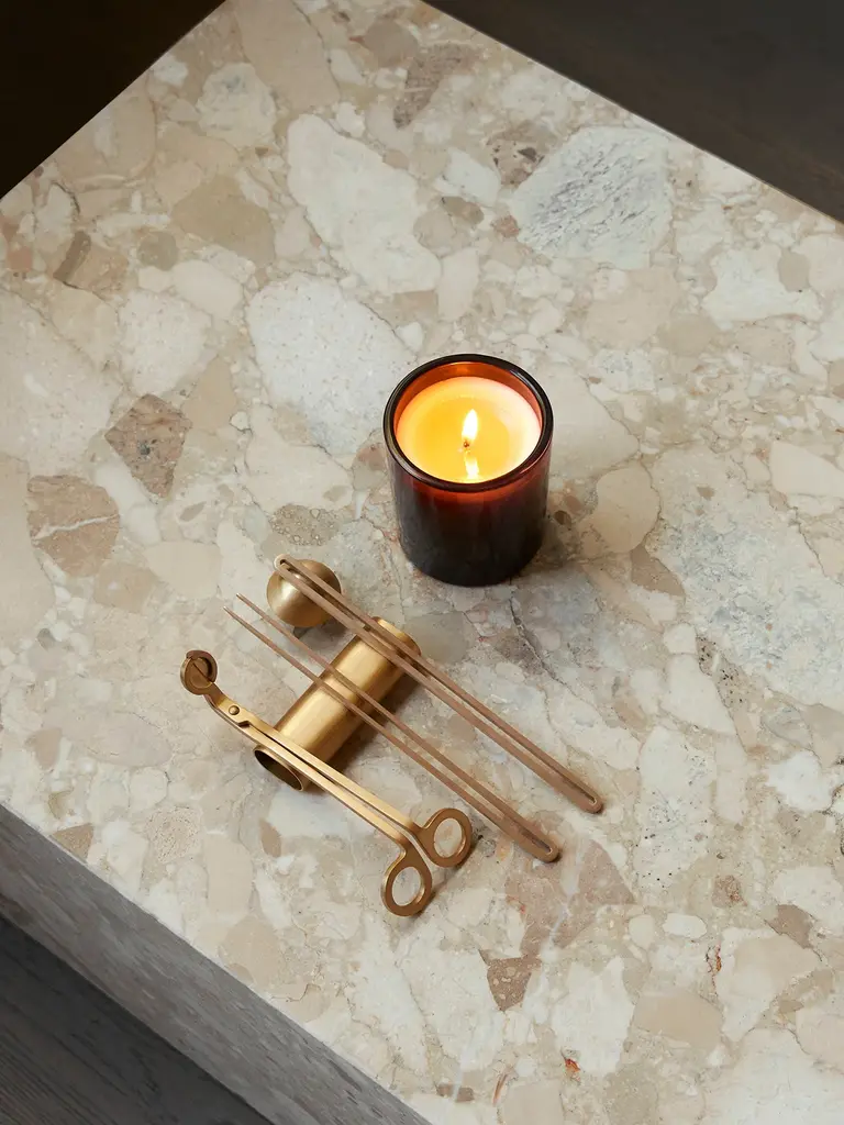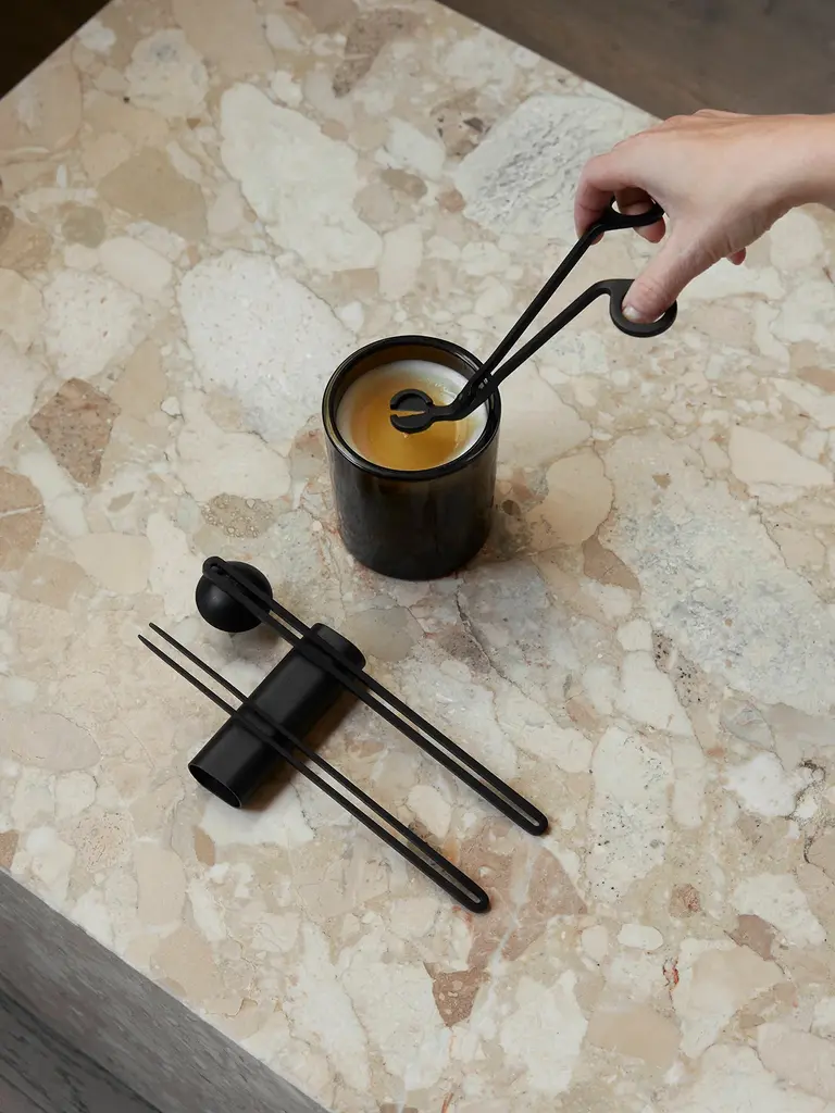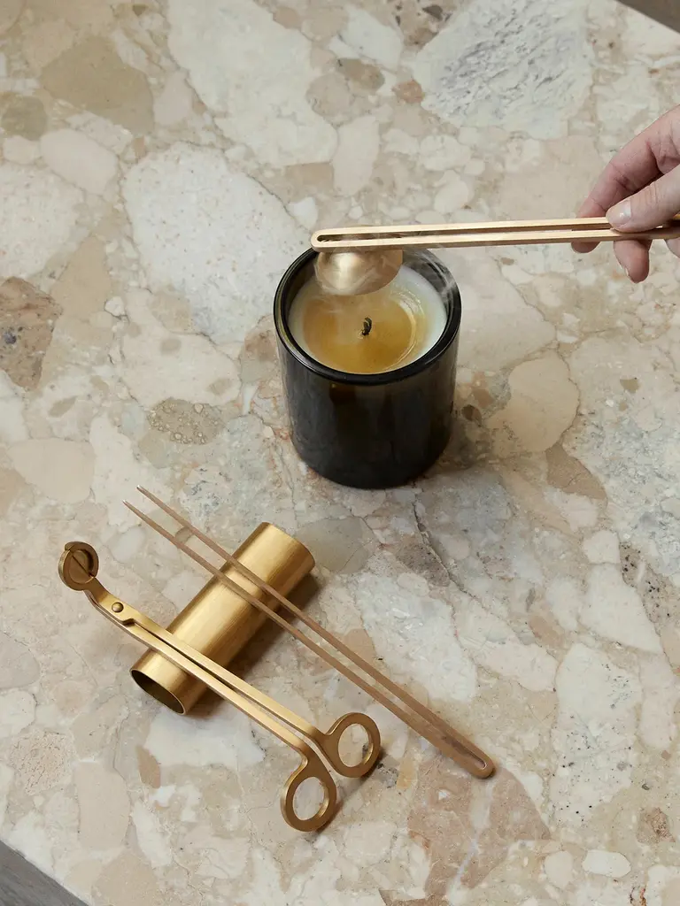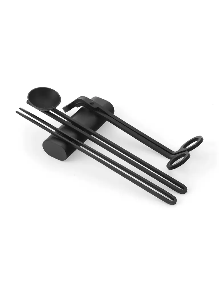 This product is final sale. Designed for optimal candle care and performance, the four-piece Candle Care Kit includes elegant tools in powder-coated metal. A candle snuffer, wick trimmer and pick ensure less smoke and sooting, better burning and the cleaner extinguishing of flames, while the accompanying tray stores the items when not in use.