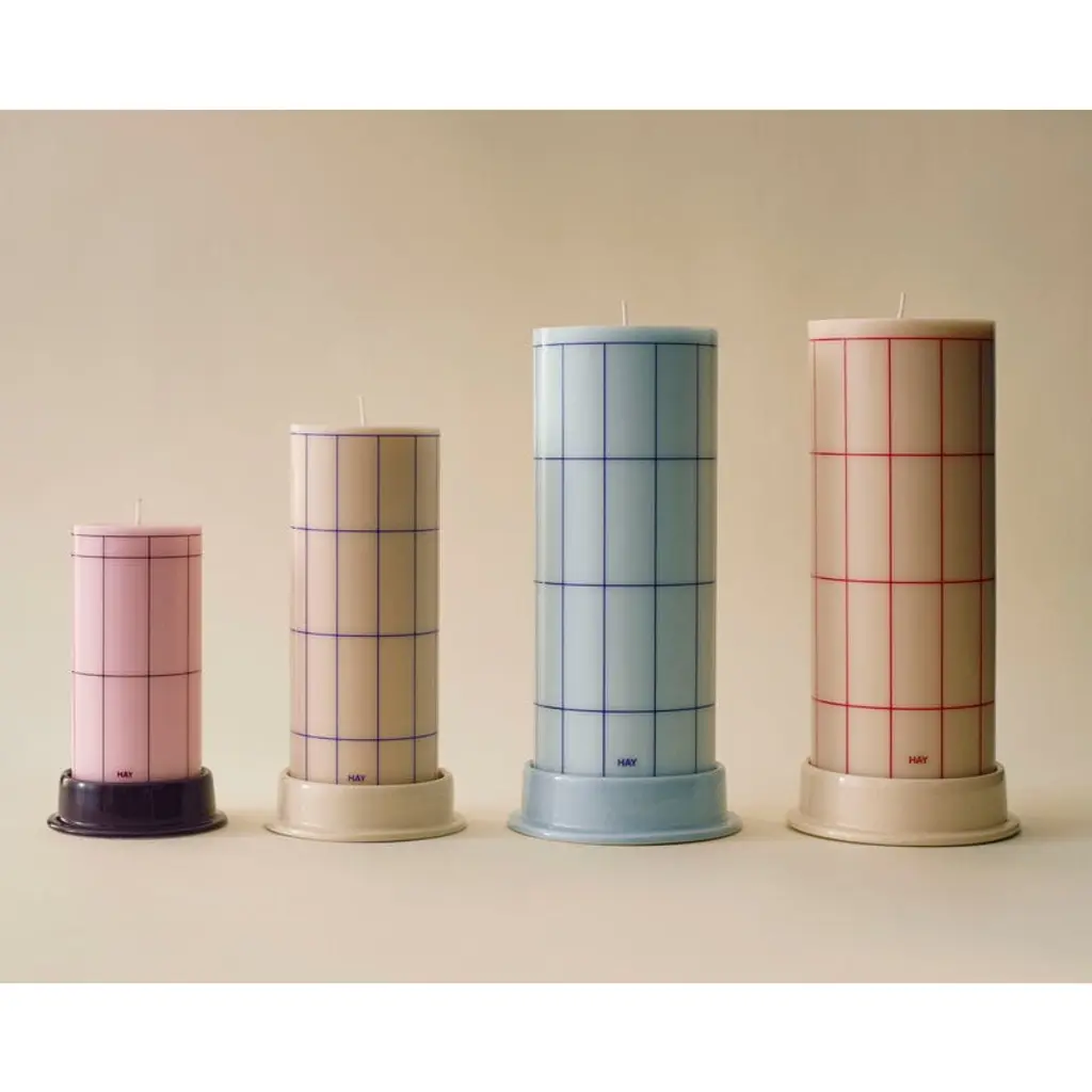 The HAY Column candle collection features candles in various sizes, colors and patterns from broad stripes to tiny checks. The candles are specially designed to be used with the HAY Column candleholder, but will also pair nicely with a holder of your choice. Plus, it's worth noting that the candle is certified with the Nordic Swan Ecolabel. This colorful checkered candle can make a lovely statement on its own or when paired with other candles. Now, here's the intriguing part: you can also mix and match various patterns of Column Candles to create a unique visual symphony in your space.