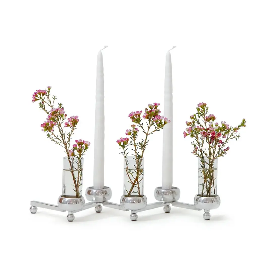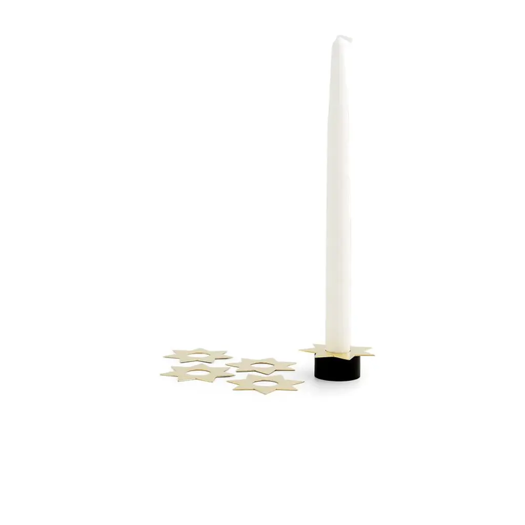 Klong's Constella candle inserts allow you to transform your Constella tealight holder into a stunning candelabra for five taper candles. Crafted from black-painted aluminum, these candle inserts provide sturdy support and elegant dark edges for the taper candles. If you wish to add an extra layer of festivity to your arrangement, consider pairing the inserts with star-shaped candle collars from the same series. The Constella candle inserts are sold in sets of five.