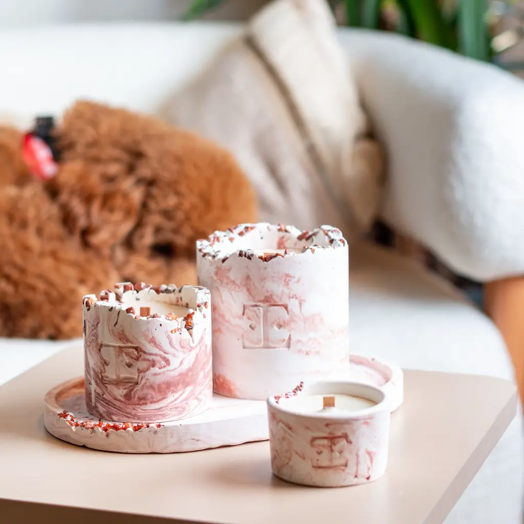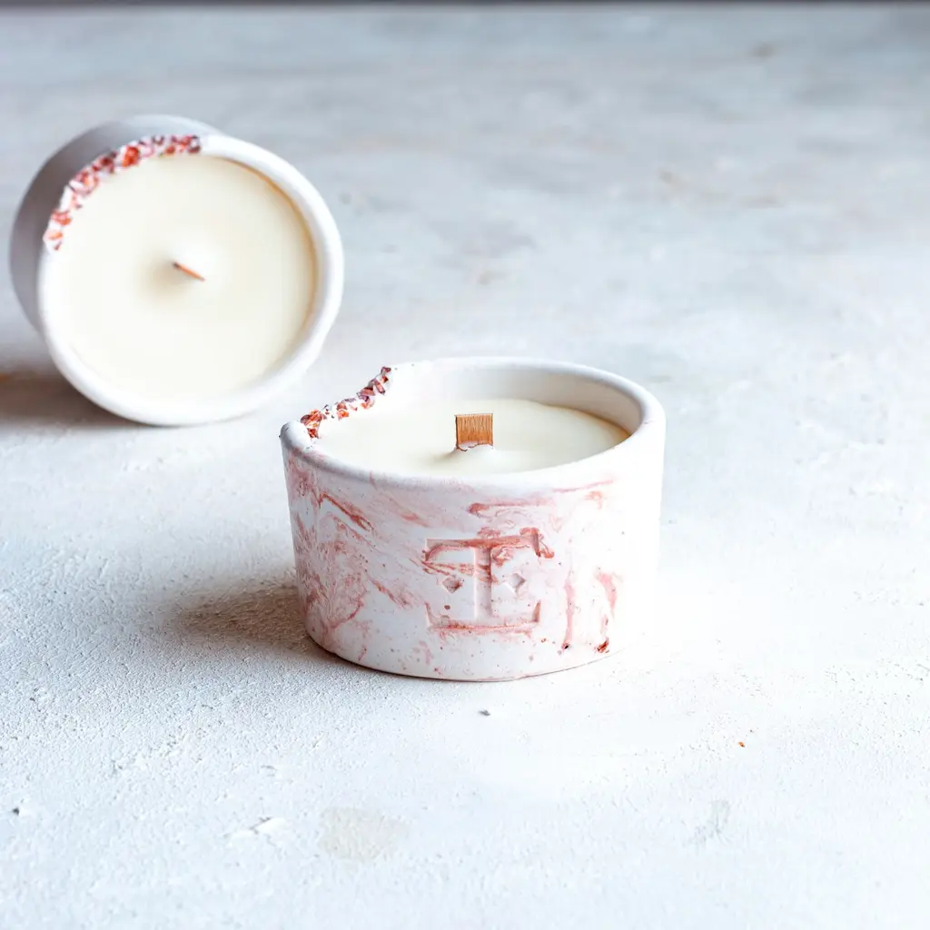 Each candle is meticulously handcrafted, infused with rich copper tones and mesmerizing aromas to create an inviting ambiance. The warm glow enhances the captivating blend of jasmine and musk, while fig and floral notes gently envelop you in tranquility. As the candle burns, delicate hints of iris and vanilla emerge, adding a touch of sophistication.Immerse yourself in the elegance and magic of Copper Charm, and let its radiant hues and enchanting scent transform your space.