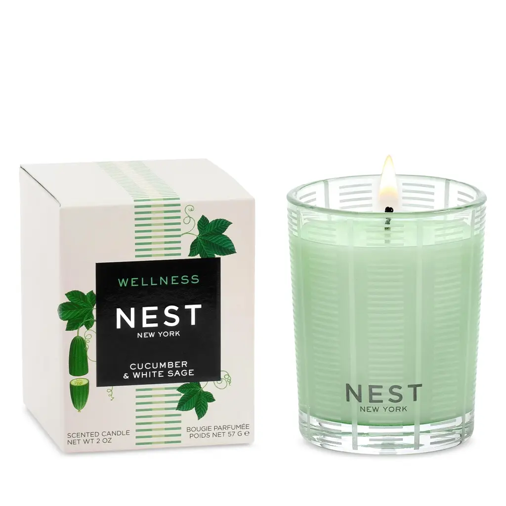 NEST New York's Wellness Cucumber & White Sage Collection features a de-stressing blend that leaves you feeling calm and refreshed. Expertly crafted with the highest quality fragrance oils, it releases exquisite scent slowly and evenly into the air, delivering continuous fragrance, uninterrupted.
